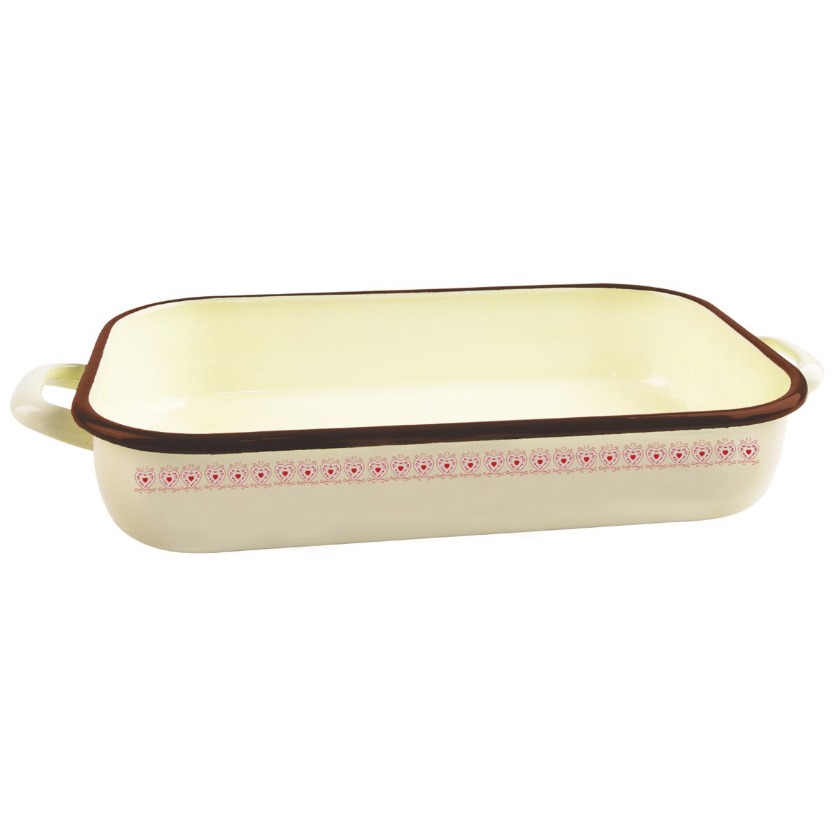 Kód produktu 123789Krásny krémový smaltovaný pekáč s ľudovým dekorom TONČA v celkovej dĺžke 37,5 cm, vhodný na pečenie sladkých aj slaných dobrôt v rúre. Vhodný aj do umývačky.