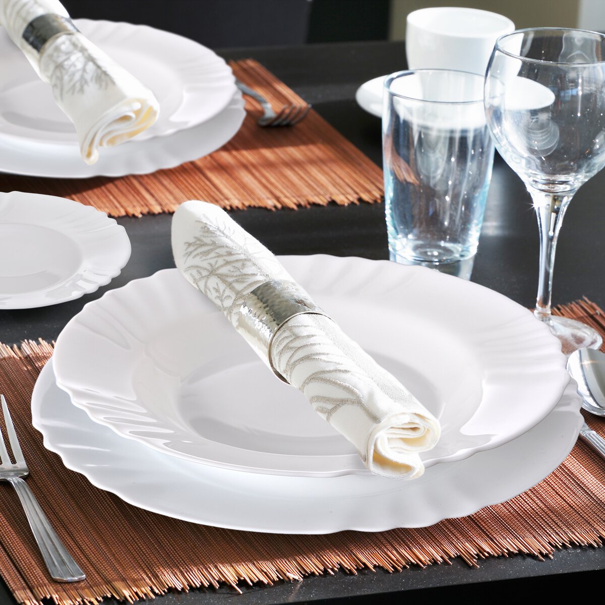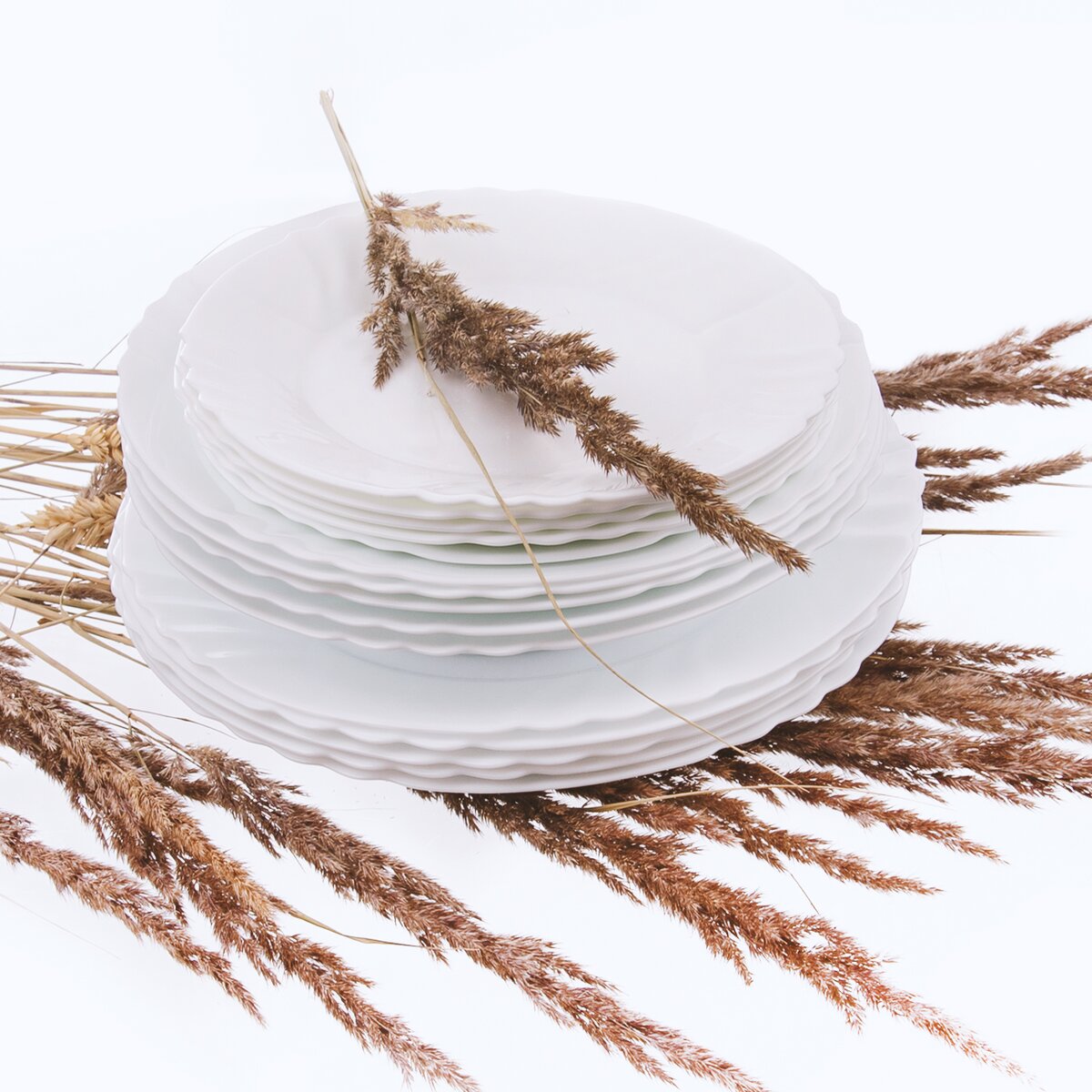 Kód produktu 128316Plytký biely tanier LUNA VLNKY s priemerom 25 cm, vyrobený z opálového skla.