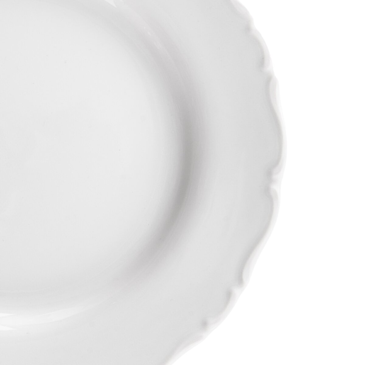 Viac informáciíKlasika, ktorá nikdy nesklame. To je plytký porcelánový tanier MONA bielej farby, ktorý zaujme svojim mierne vlnitým okrajom s decentným reliéfom. Jeho priemer je 24,5 cm.