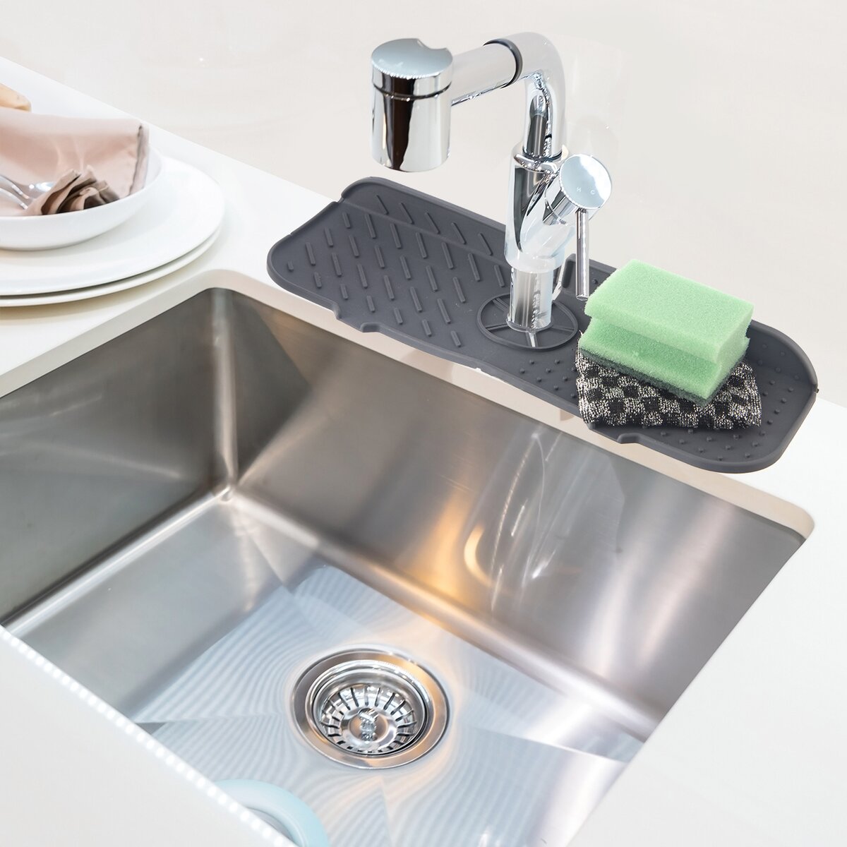 Kód produktu 540118Pružná podložka vhodná na ukladanie hubiek, drôteniek, saponátov a pod. okolo vodovodnej batérie pri dreze.