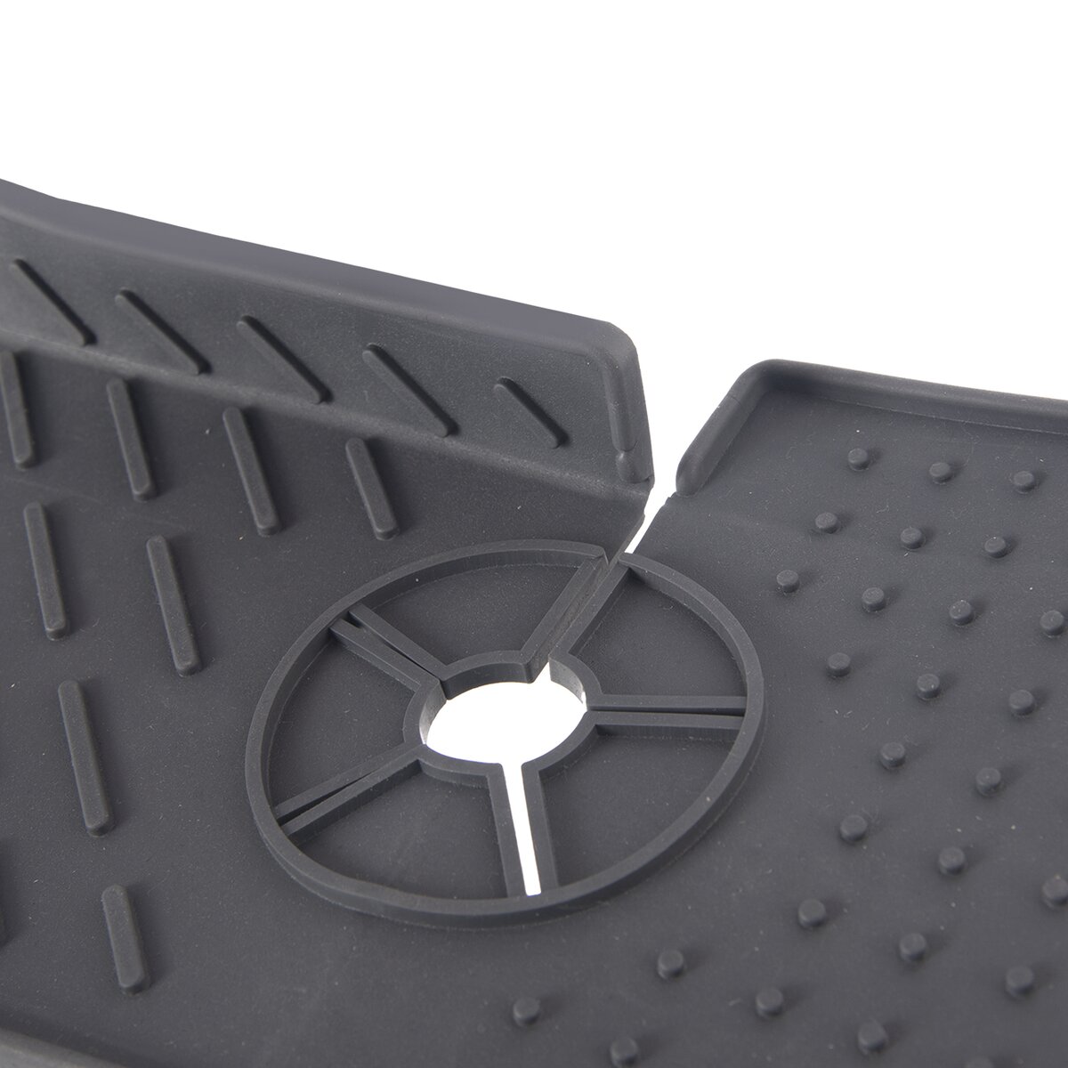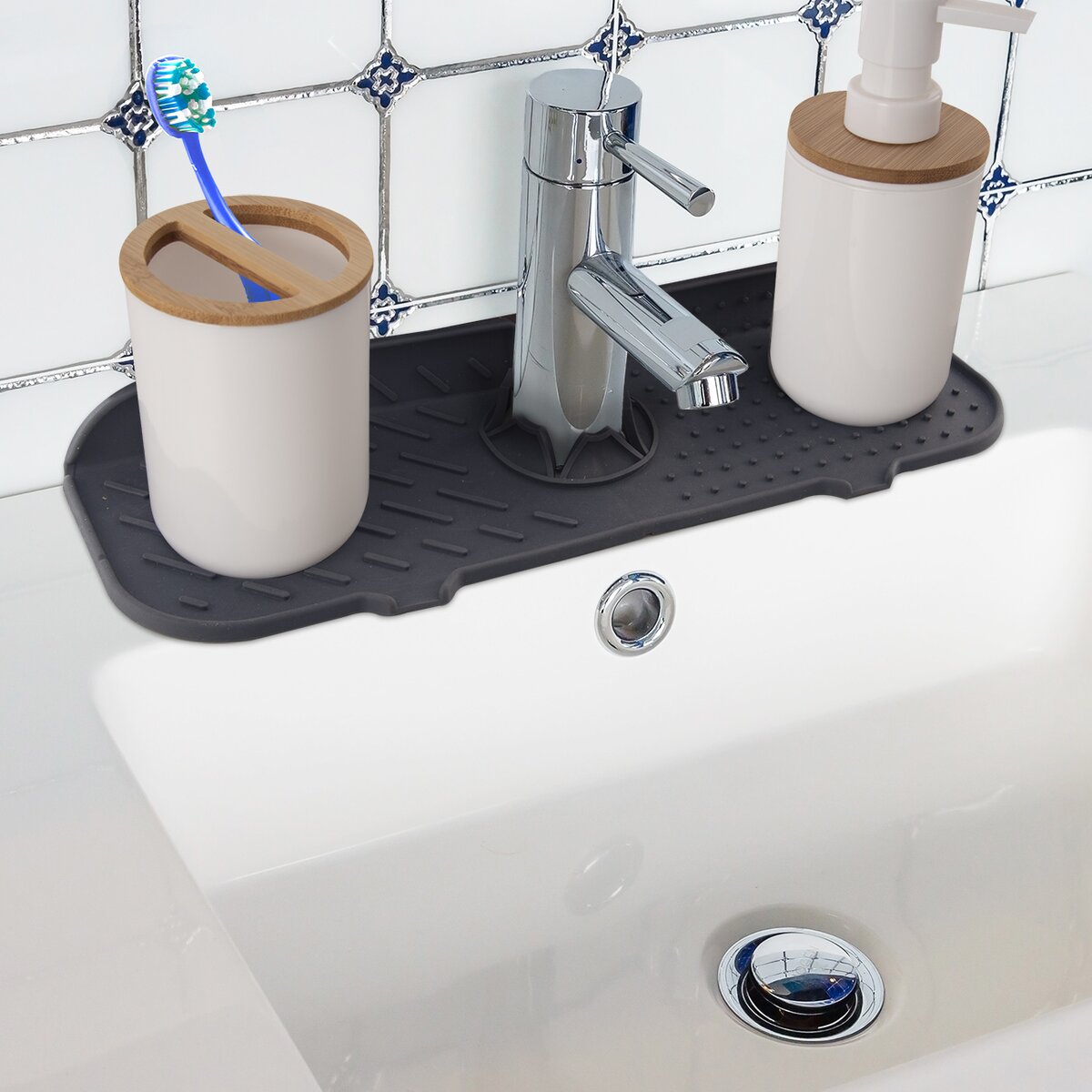 Jednoducho ju na mieste pridržiava vodná batéria, ktorou zovrie otvor uprostred podložky. Tvarované výpuste nasmerujú vodu tak, aby odtekala do umývadla/drezu.