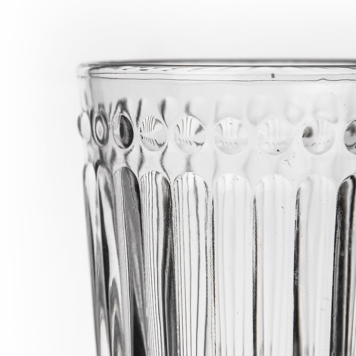 Kód produktu 127296Poháre s plastickým vzorom. Materiál: sklo. Rozmery: objem 0,32 l, pr. 8 cm, v. 10 cm.