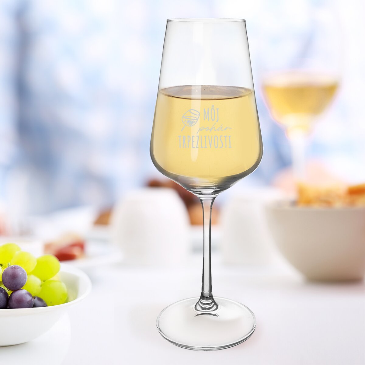 Kód produktu 145134Originálny pohár na víno s objemom 0,45 l je vyrobený z českého skla. Zdobí ho nápis "Môj pohár trpezlivosti". Známka Bohemia Crystal je zárukou kvality a poctivej českej výroby.