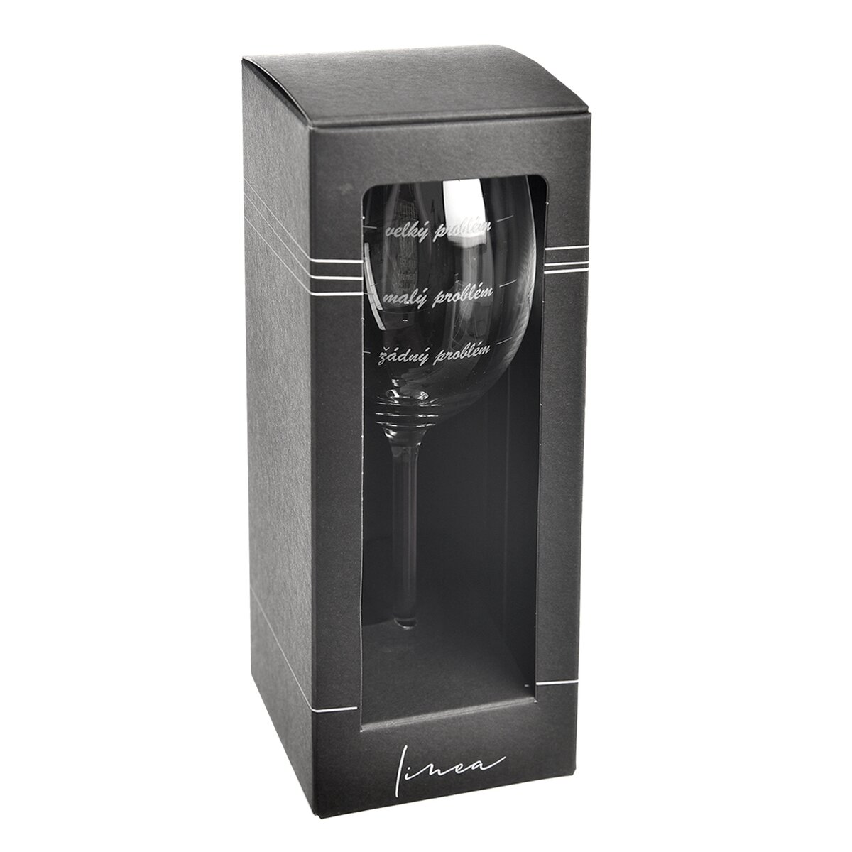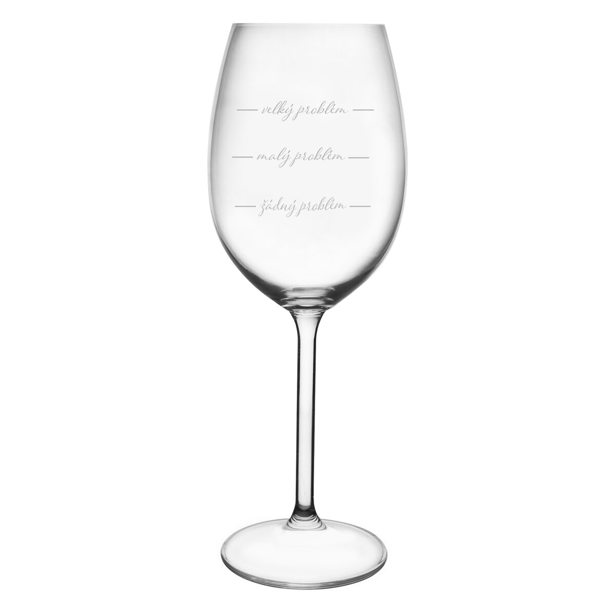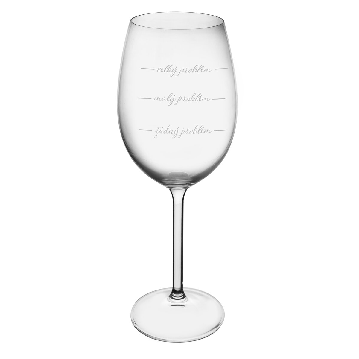 Kód produktu 129310Originálny vtipný pohár na víno PROBLÉM s objemom 0,45 l je vyrobená z českého skla. Známka Bohemia Crystal je zárukou kvality a poctivej českej výroby.
