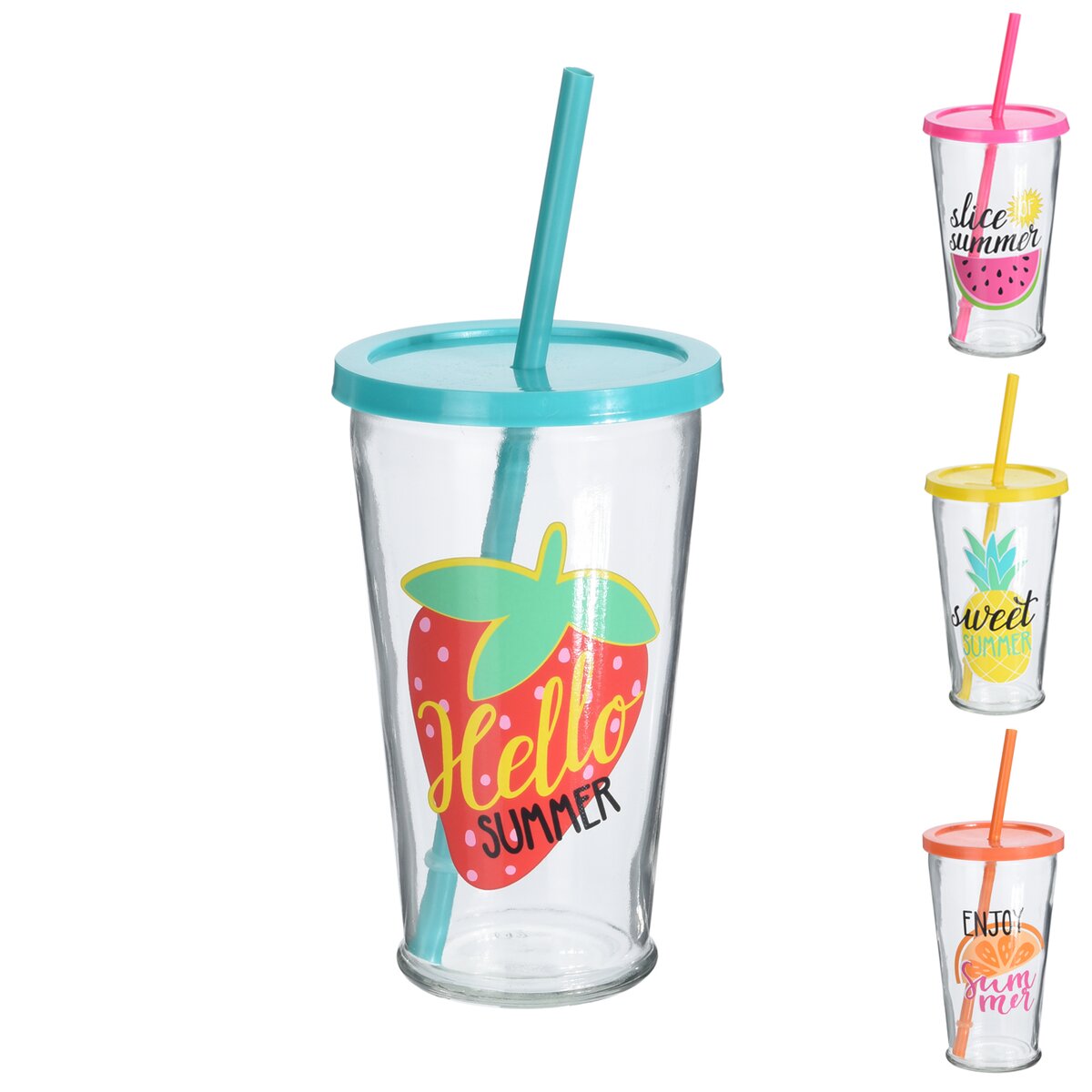 Kód produktu 126457Poháre na miešané drinky s viečkom a slamkou - či už na alkoholické nápoje alebo bez alkoholu, s ovocím, ľadom... Materiál: sklo, plast – viečko, slamka vo viečku. Rozmery: objem 0,45 l, pr. 9 cm, v. 15/19,5 cm.
