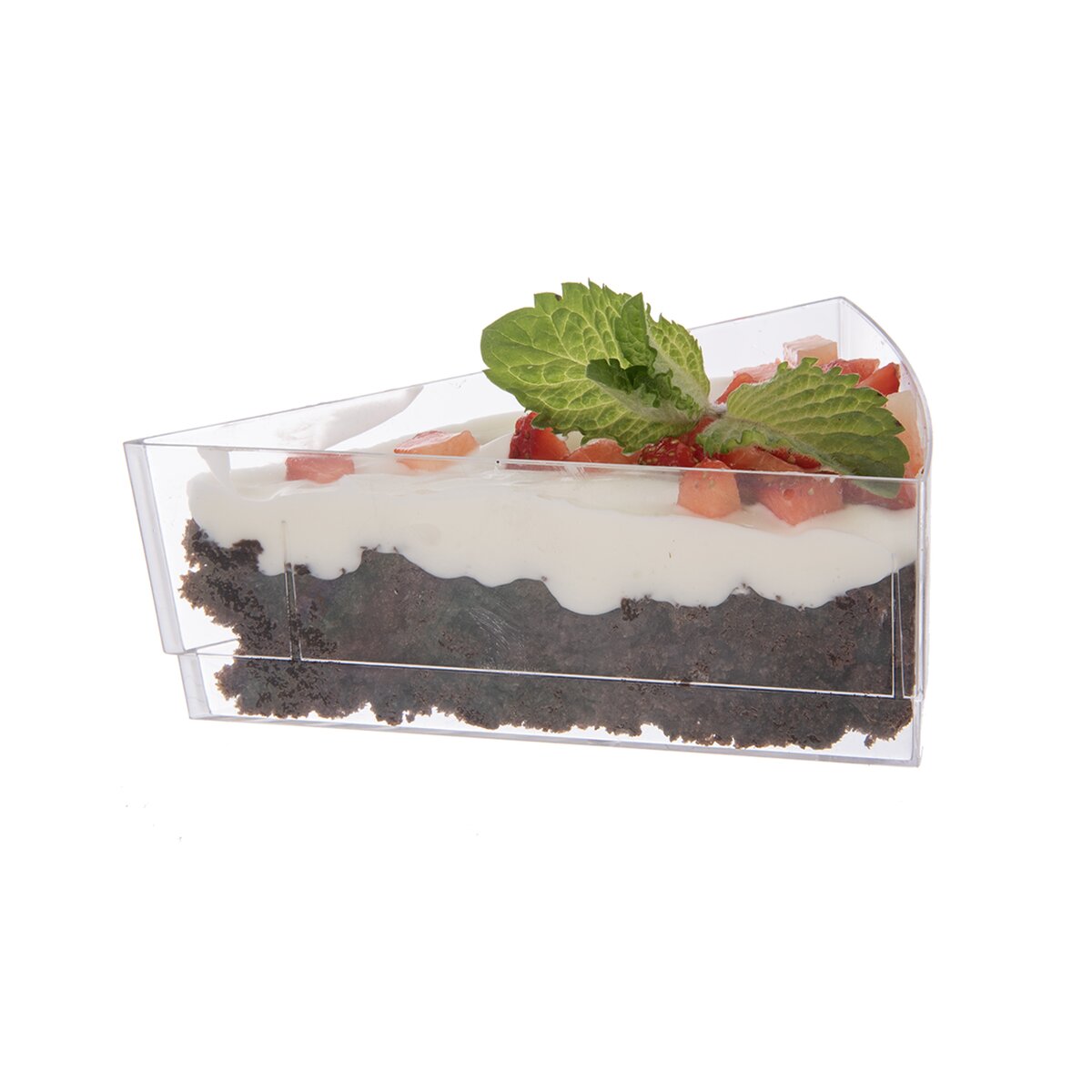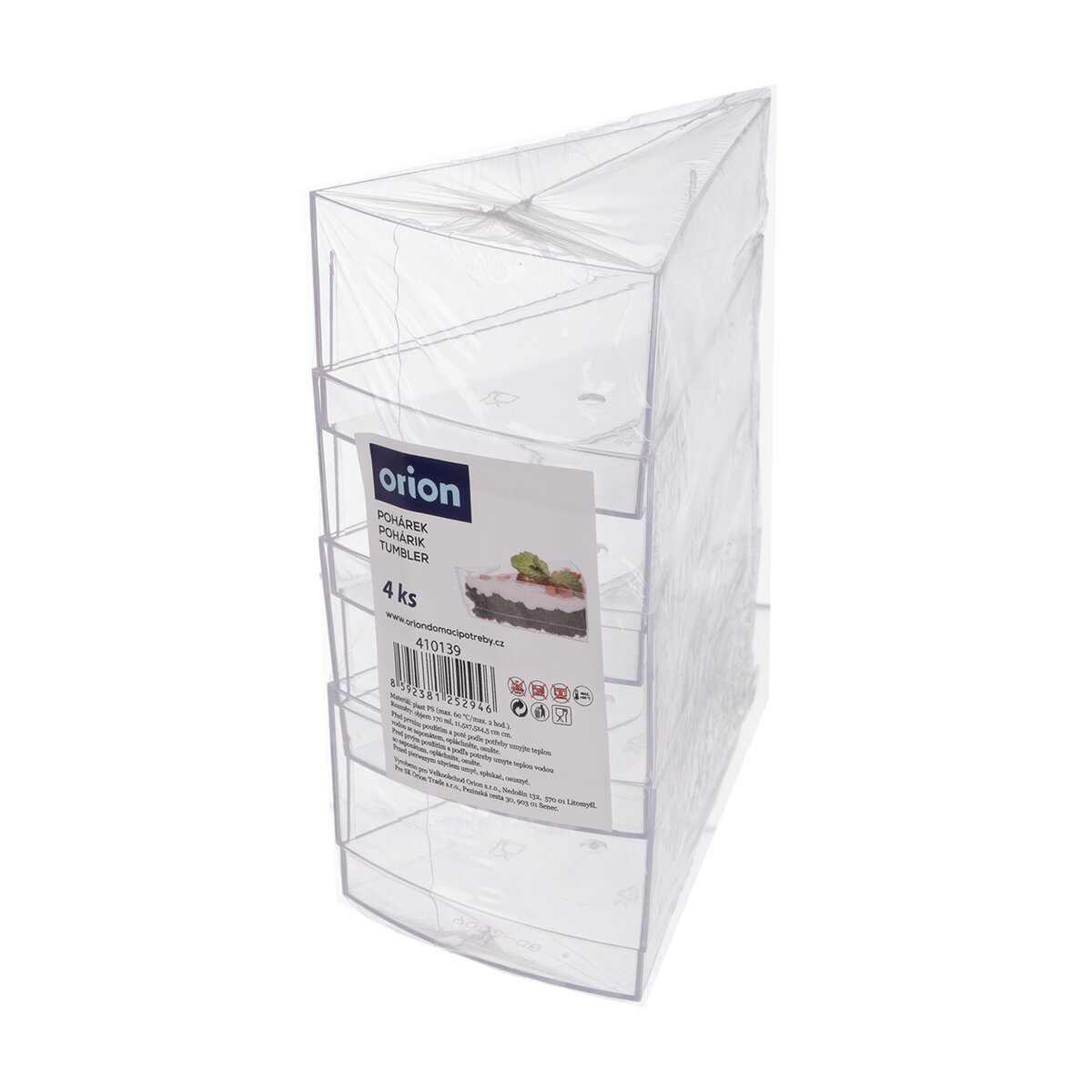Kód produktu 410139Sada 4 ks transparentných pohárikov, ktoré vyzerajú ako kúsok torty, je ako stvorená na chladené sladké dezerty typu panna cotta, Tiramisu aj slané pochúťky a peny.