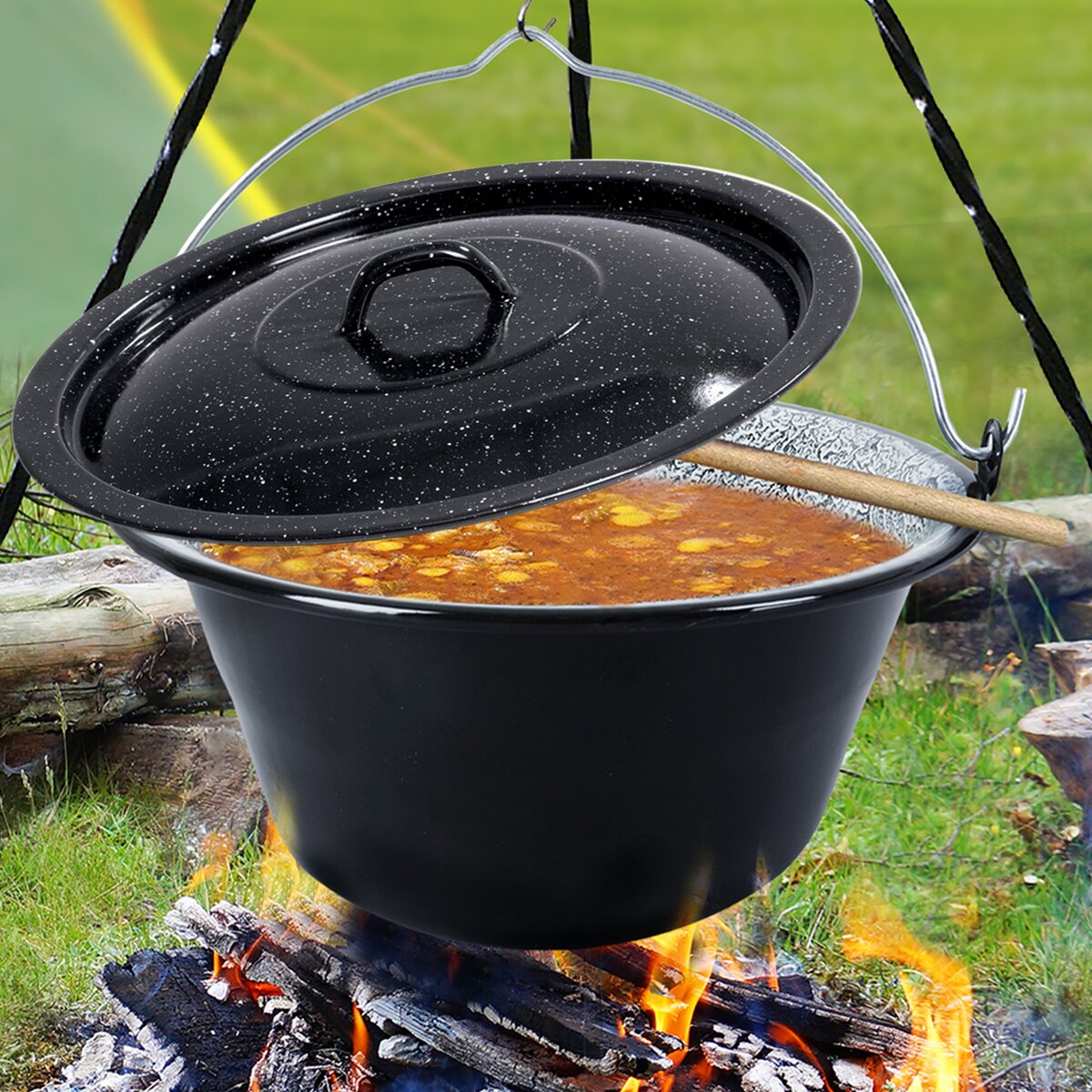 Kód produktu 126303Smaltovaná pokrievka pr. 40 cm zrýchli kotlíkové varenie na ohni.