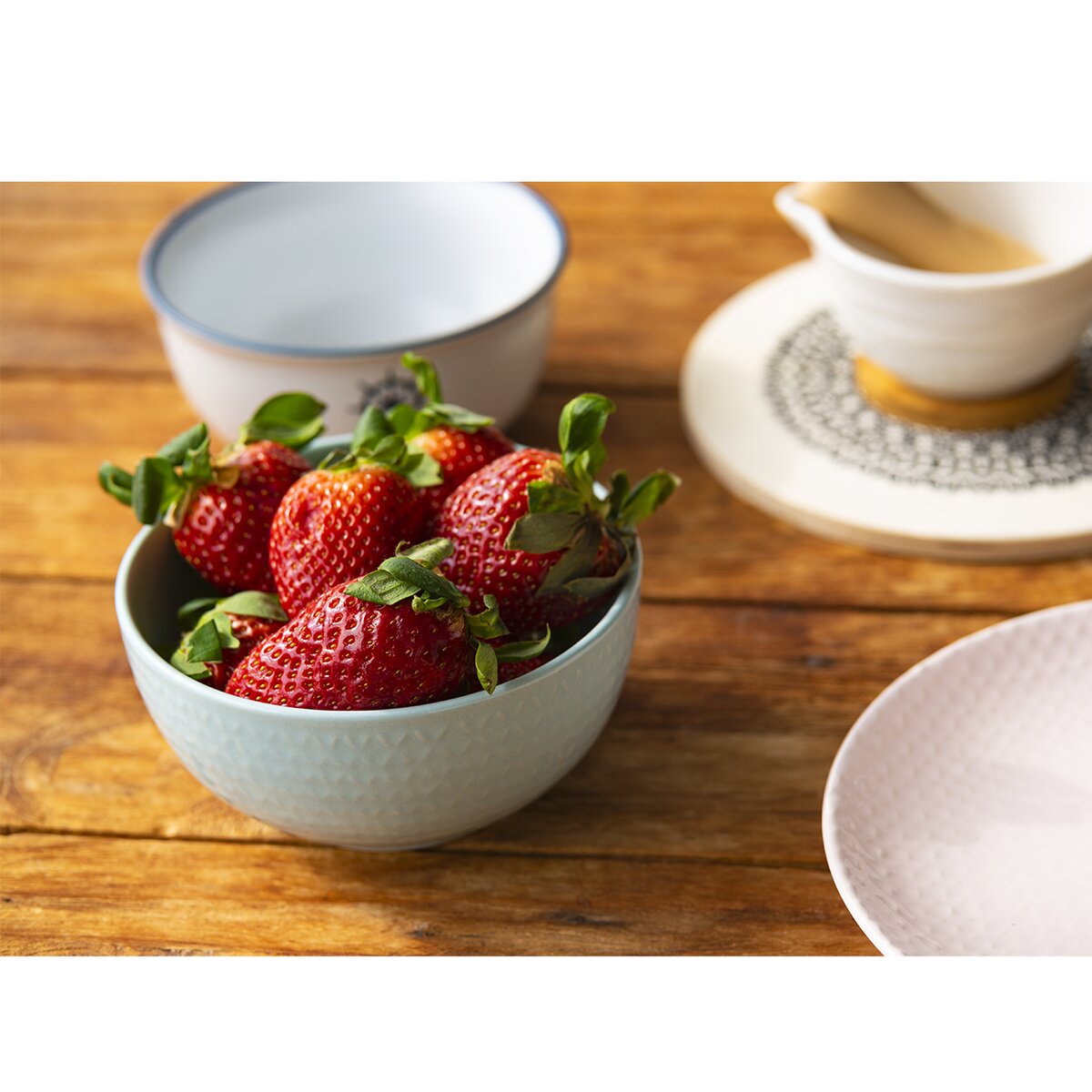 Miska s plastickým dekorom. Materiál: keramika. Vhodný do umývačky riadu i MVR. V niekoľkých farebných variantách. Rozmery: objem 0,7 l, pr. 14 cm, v. 7 cm.