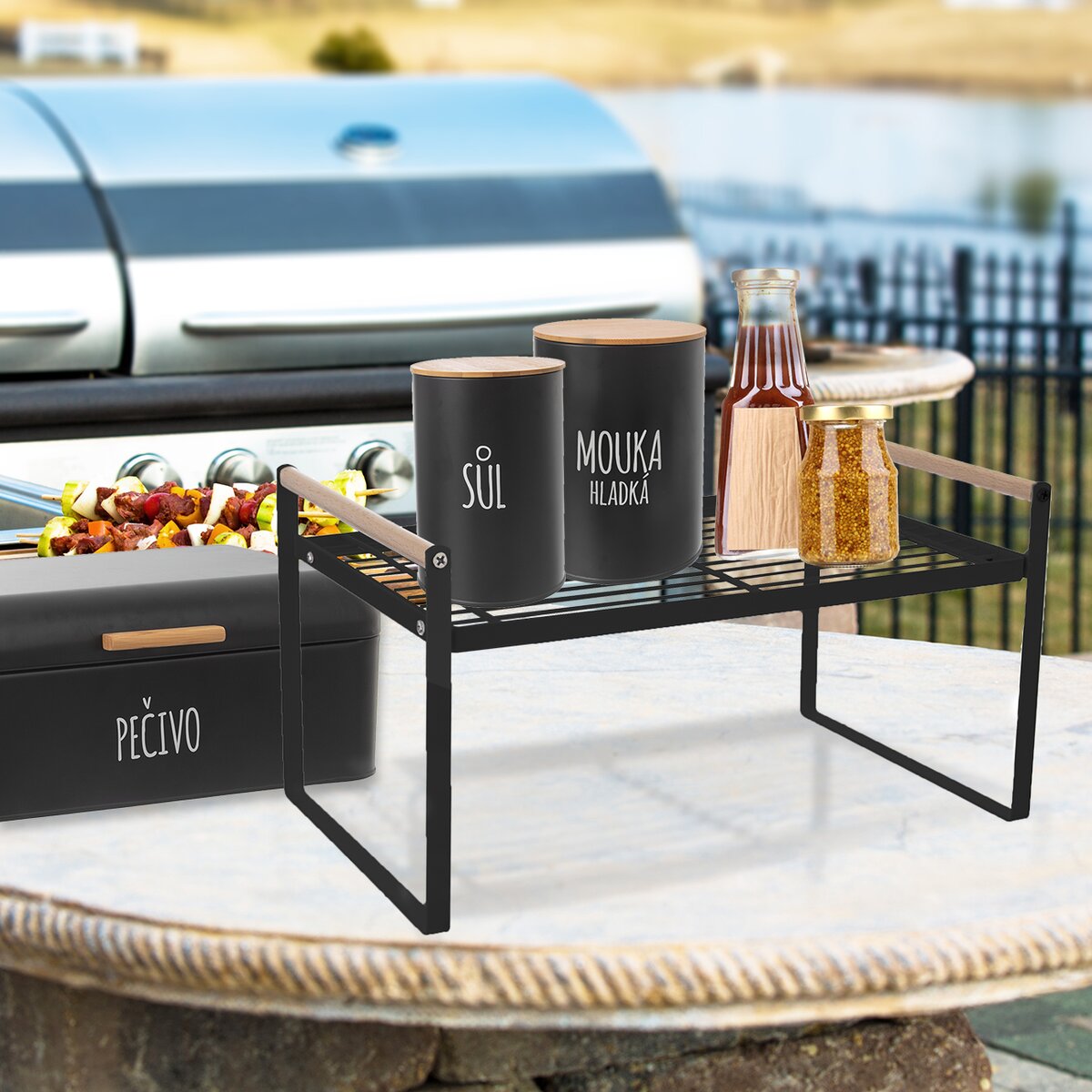Môže poslúžiť aj ako polička, na utierky aj plechové alebo sklenené dózy na sypké potraviny a dochucovadlá.