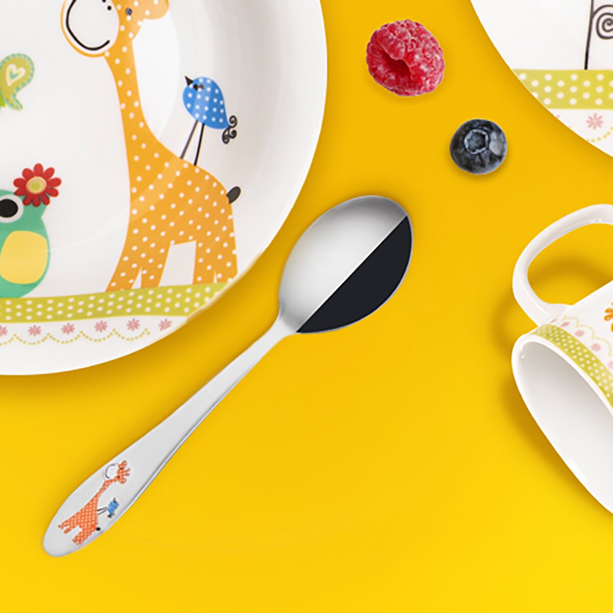 Kód produktu 143674Detská nerezová lyžica s farebným motívom žirafy je určená pre každodenné používanie.