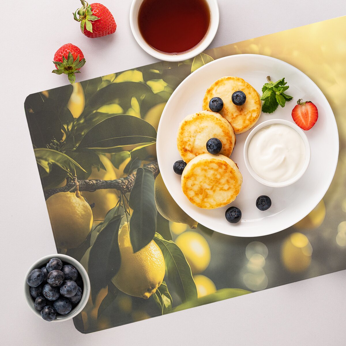 Kód produktu 728043Moderné prestieranie s motívmi ovocia podčiarkne stolovanie a ochráni stôl pred poškodením a zašpinením.