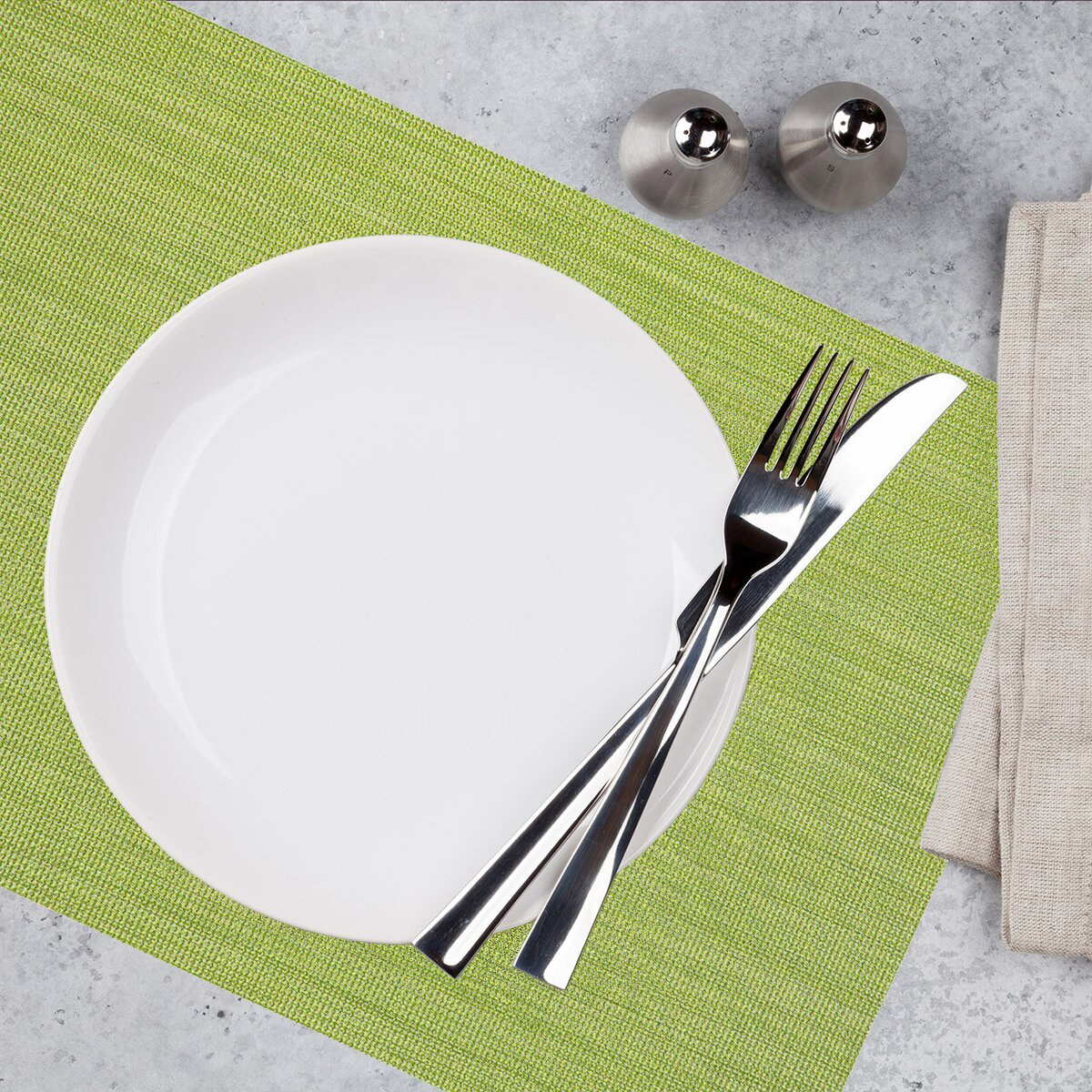 Kód produktu 728012Príjemné syntetické prestieranie svetlo zelenej farby a veľkosti 45x30 cm podčiarkne stolovanie a ochráni stôl pred poškodením a zašpinením.