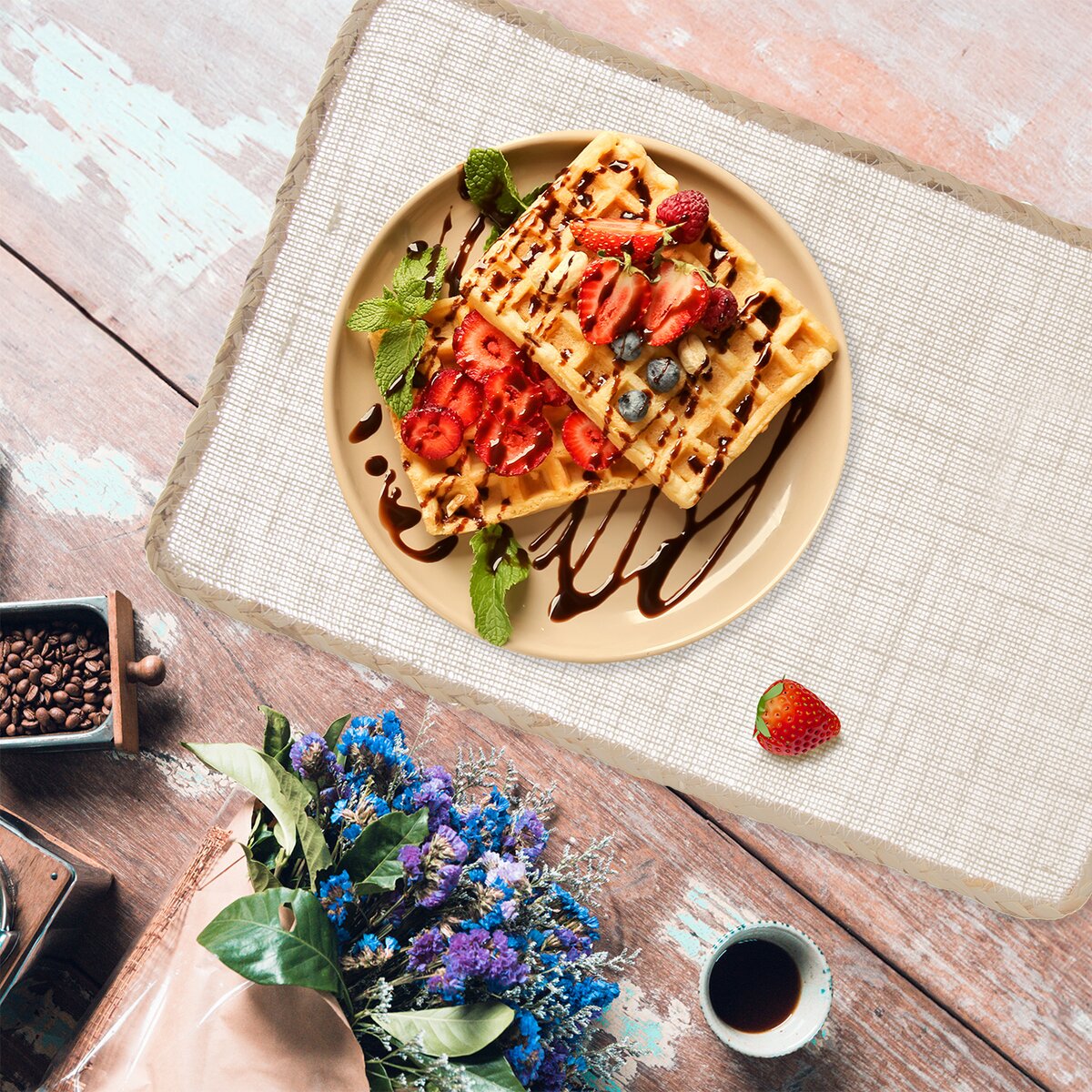 Môže byť aj samostatnou podložkou pod dochucovacou súpravou, košíkom s ovocím, vázou, bylinkami alebo kvetinou v kvetináči.