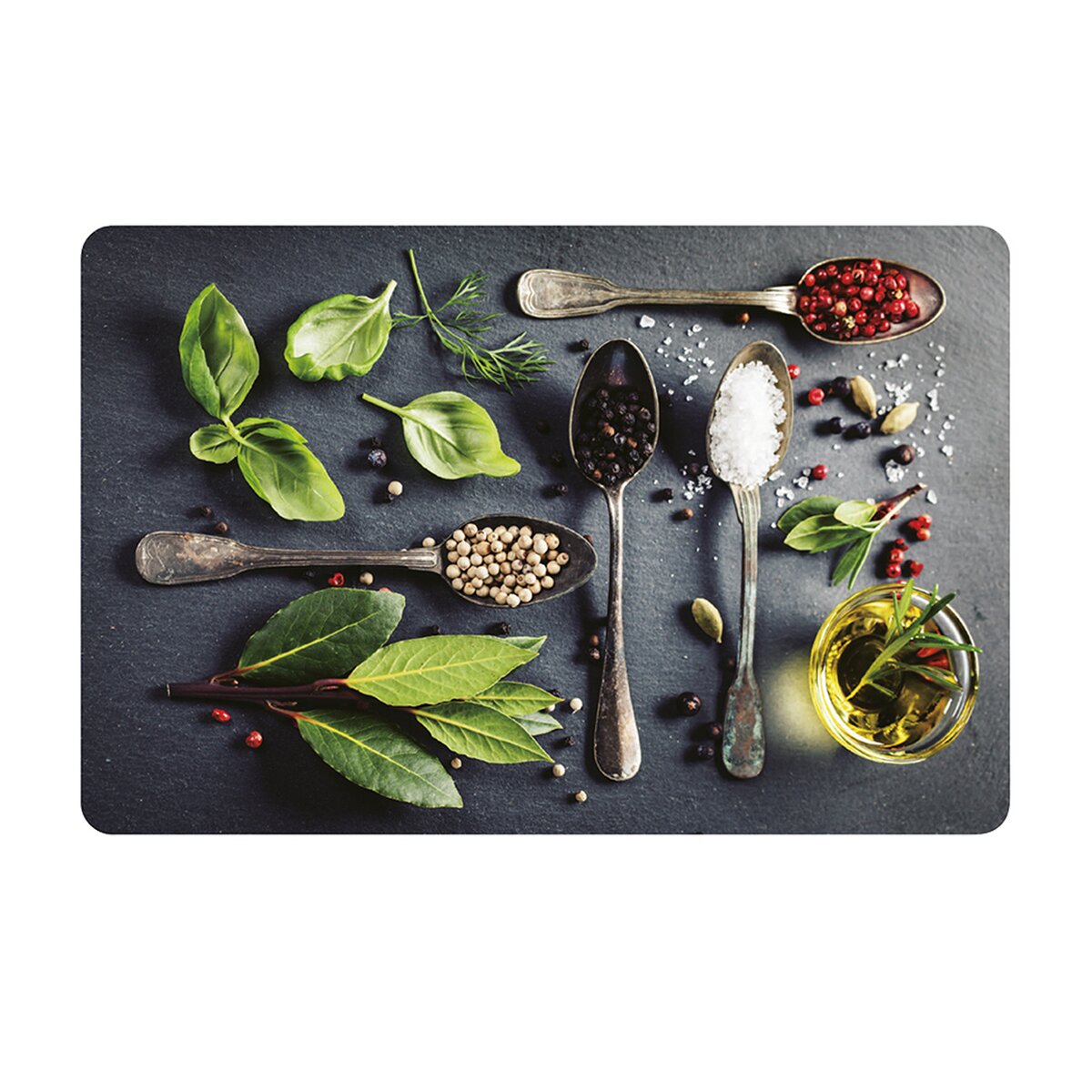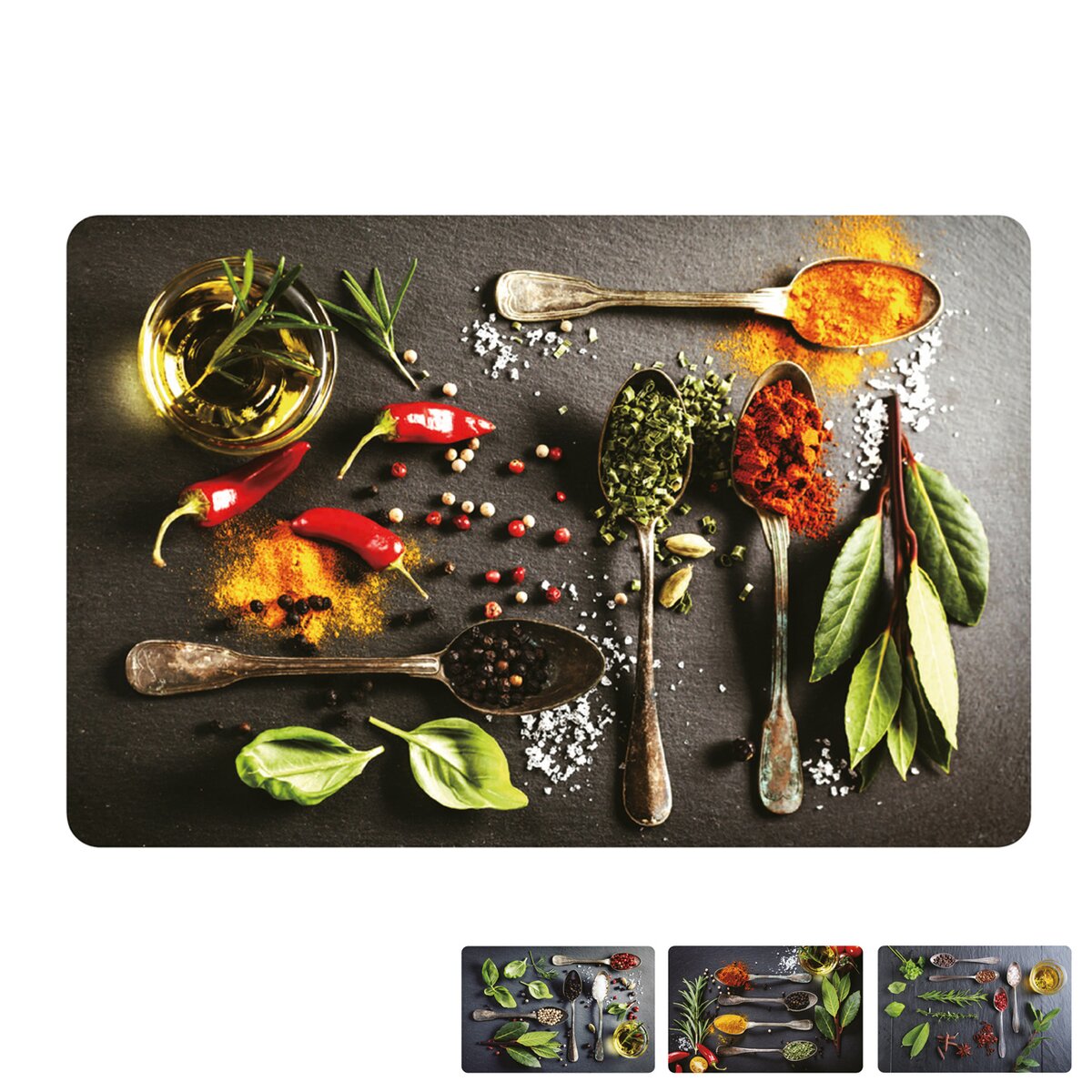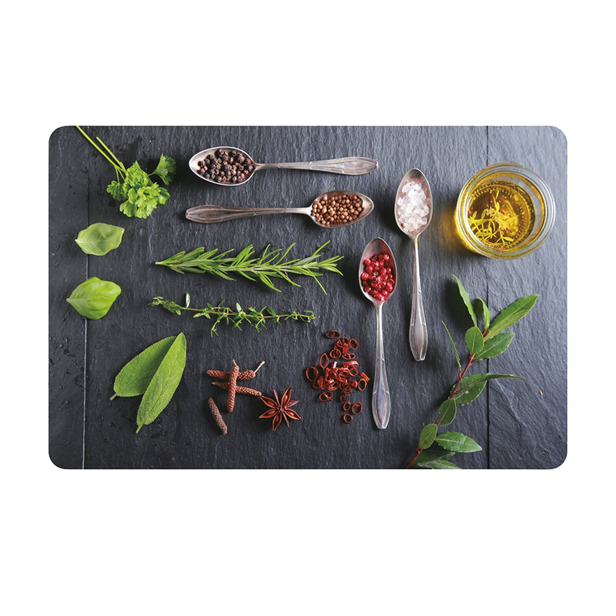 Tam, kde je interiér veľmi jednoduchý, toto výrazné prestieranie plné korenia a byliniek dobre vynikne. Môže byť aj samostatnou podložkou pod dochucovacou súpravou na jedálenskom stole alebo pod chlebníkom a kanvicou na kuchynskej linke.