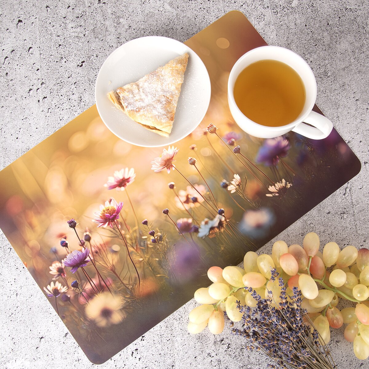 Kód produktu 728088Moderné prestieranie s motívmi lúčneho kvetu v rozmere 43x28 cm podčiarkne stolovanie a ochráni stôl pred poškodením a zašpinením.