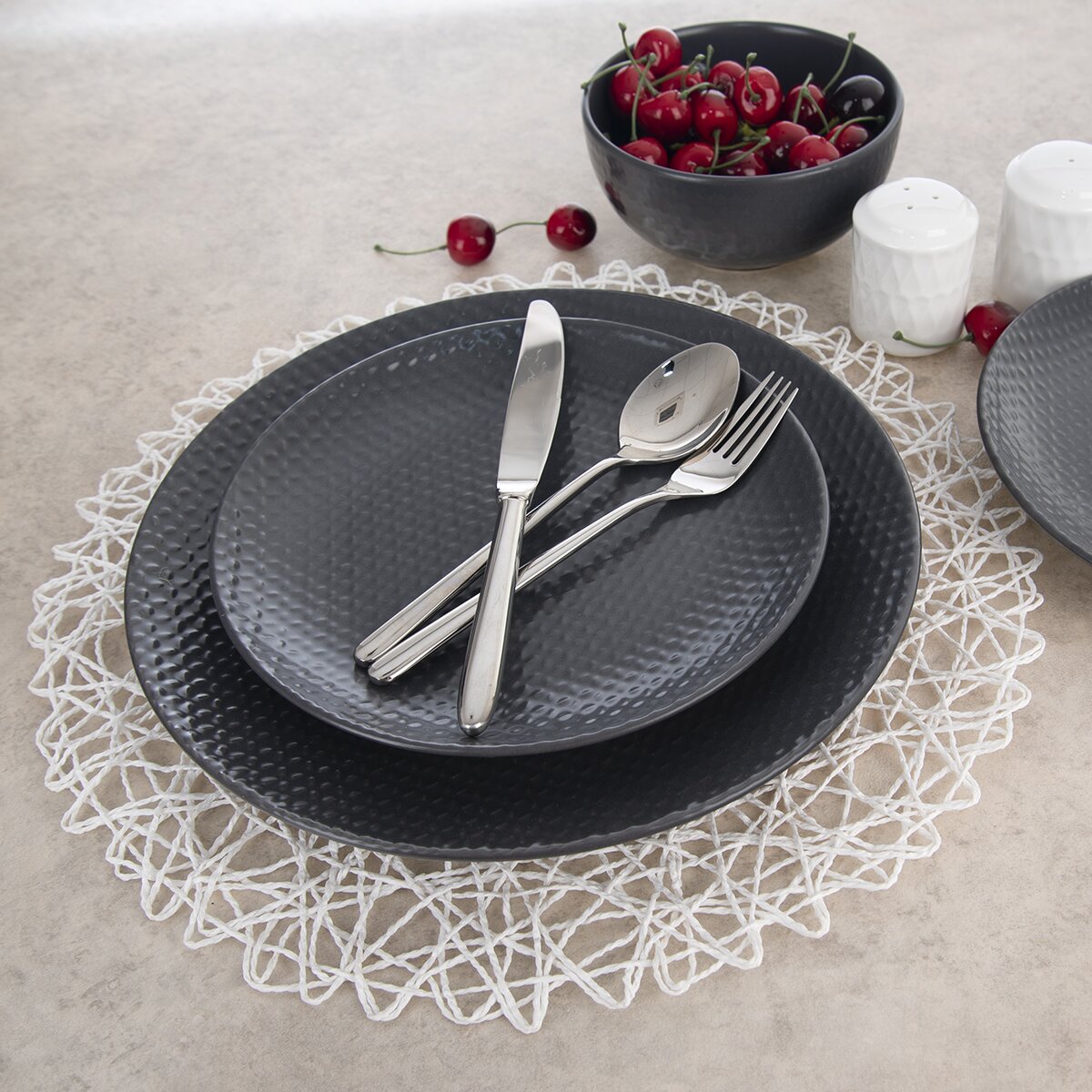 Štýlové prestieranie z papierového škrobeného povrázku má šmrnc a je zároveň praktické. Určuje priestor s taniermi a príbormi pre jednotlivých stravníkov. Vynikne na drevenej aj jednofarebnej doske stola, ale aj na čistom obruse alebo v kombinácii s behúňom.