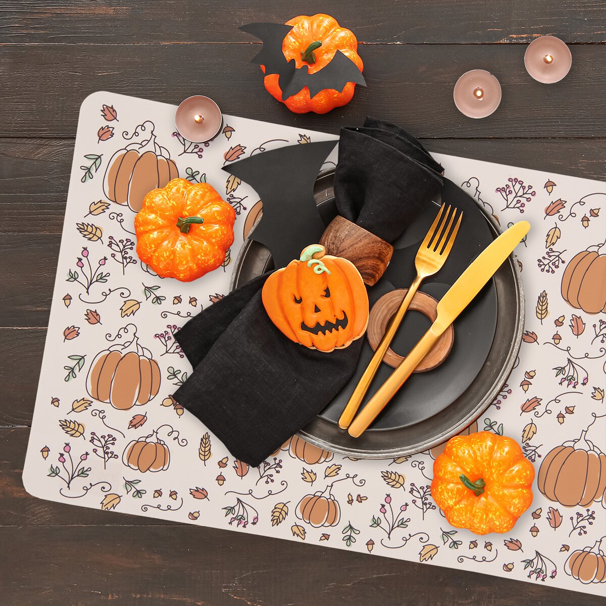 Môže byť aj samostatnou podložkou pod dochucovacou súpravou na jedálenskom stole alebo pod halloweenskymi dekoráciami a strašidelnou väzbou z jesenných prírodnín plných červených, hnedých či žltých tónov.