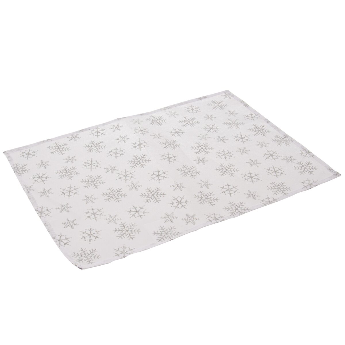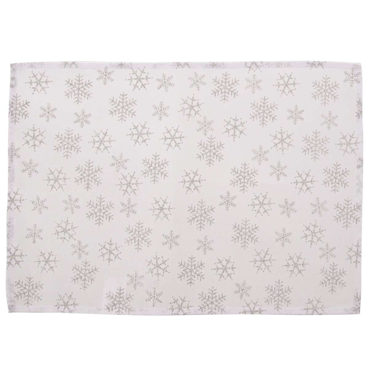 Kód produktu 728002Sada 2 kusov bieleho polyesterového prestierania s dekorom strieborných vločiek, ktoré využijete predovšetkým v dobe adventu a Vianoc.