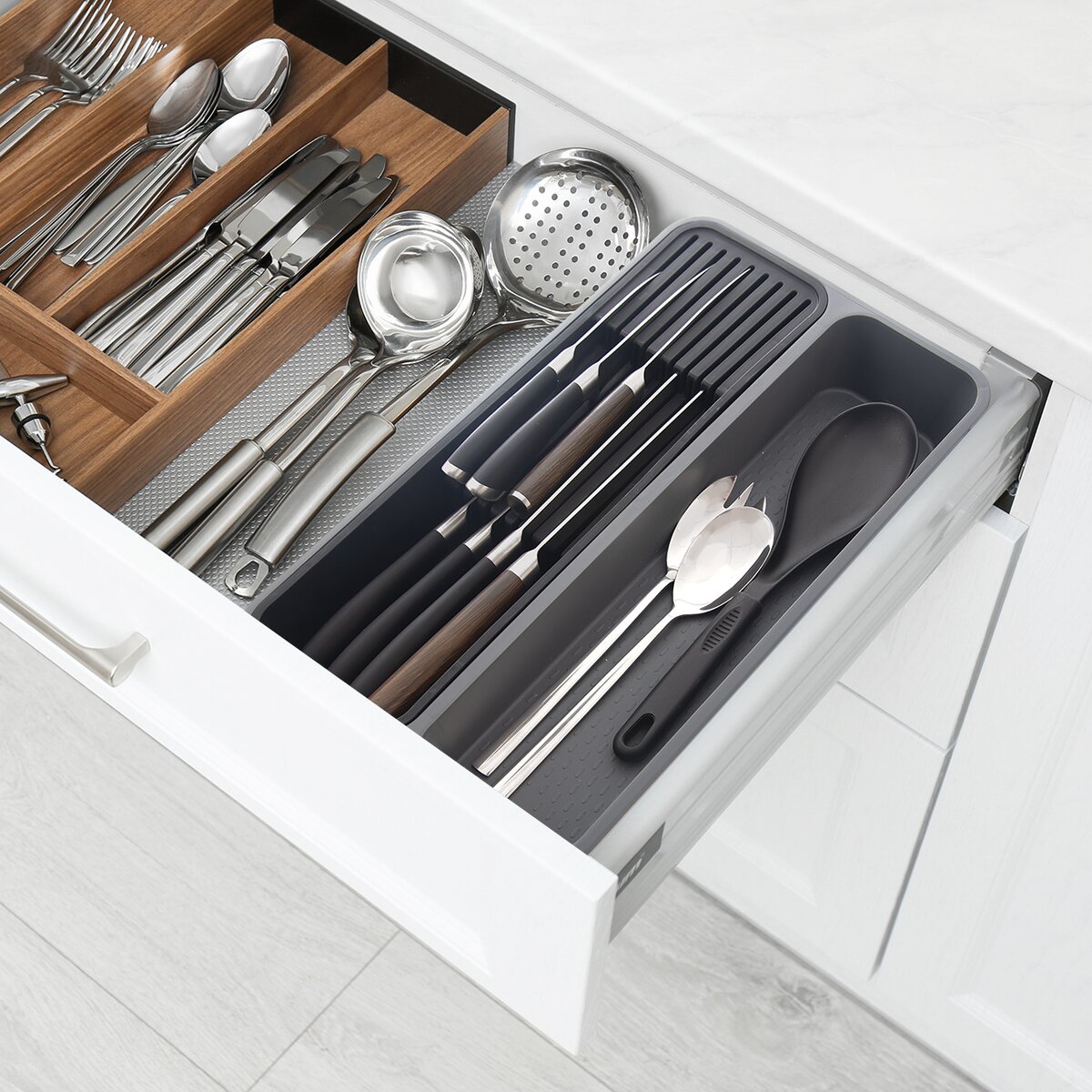 Kód produktu 150747Príborník Grey využijete v kuchynských zásuvkách na uloženie nožov a ďalšieho kuchynského náčinia, ktoré bude pekne po ruke.