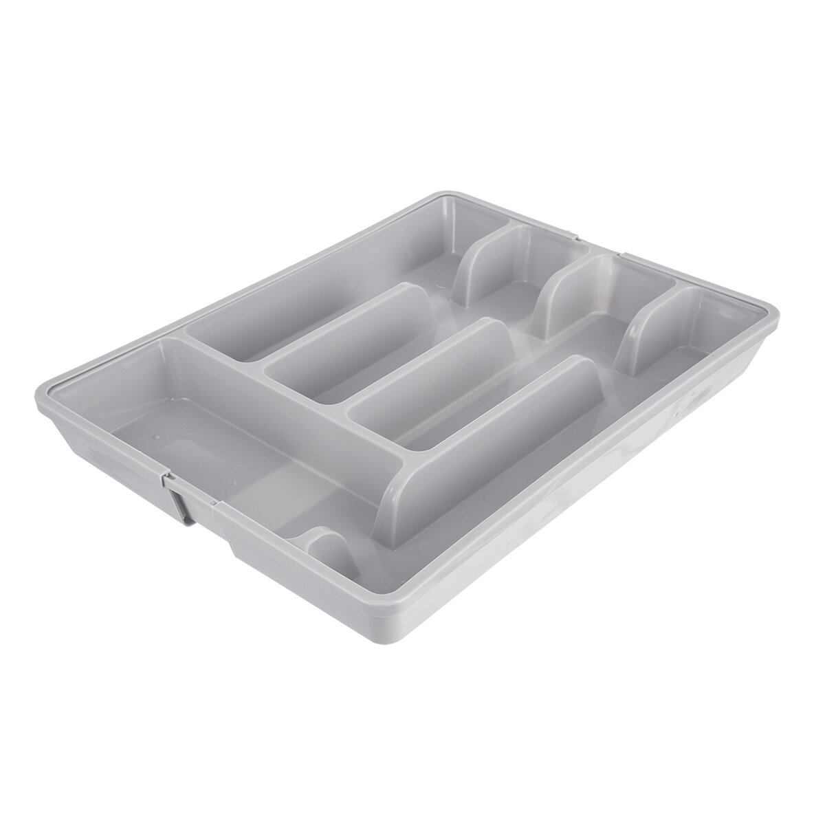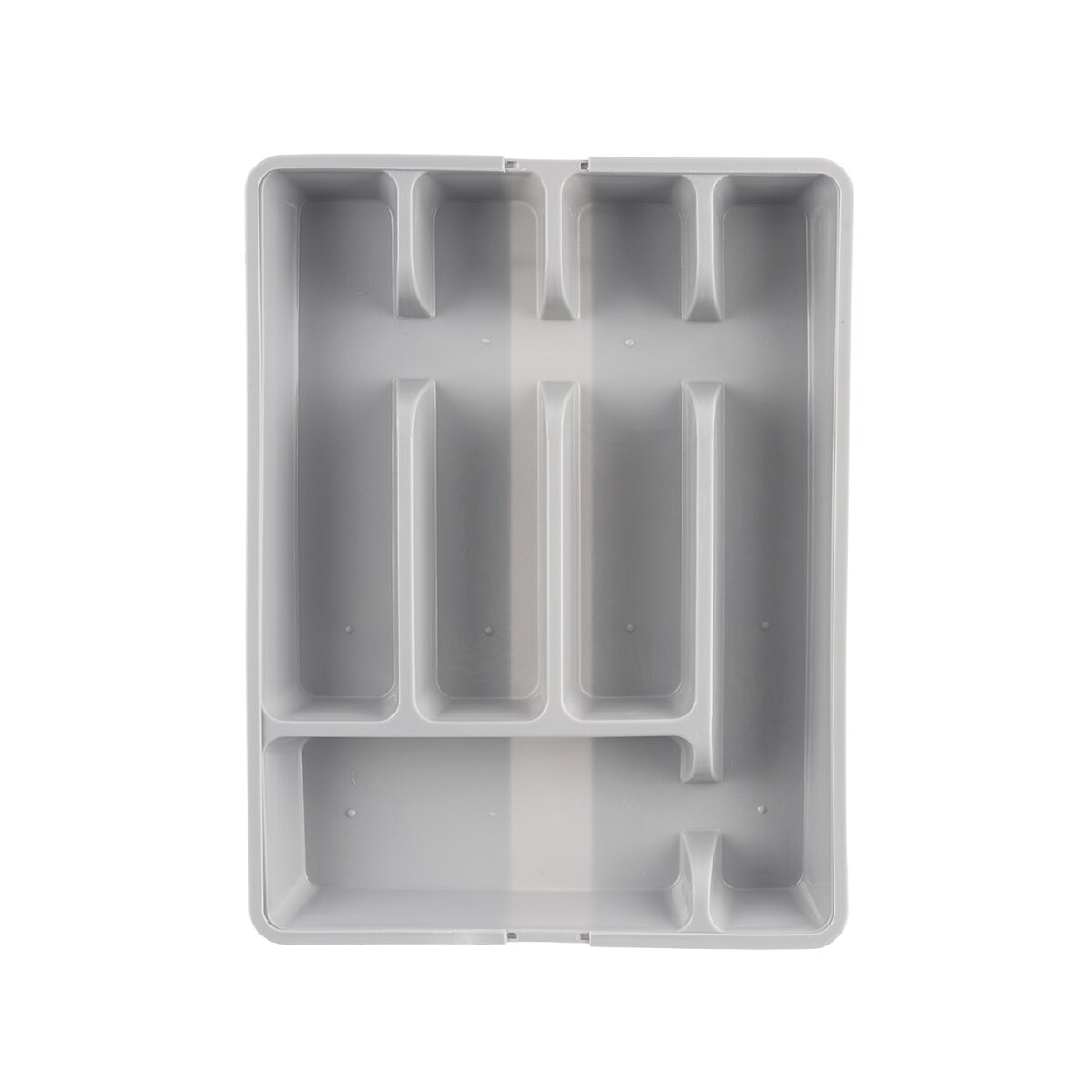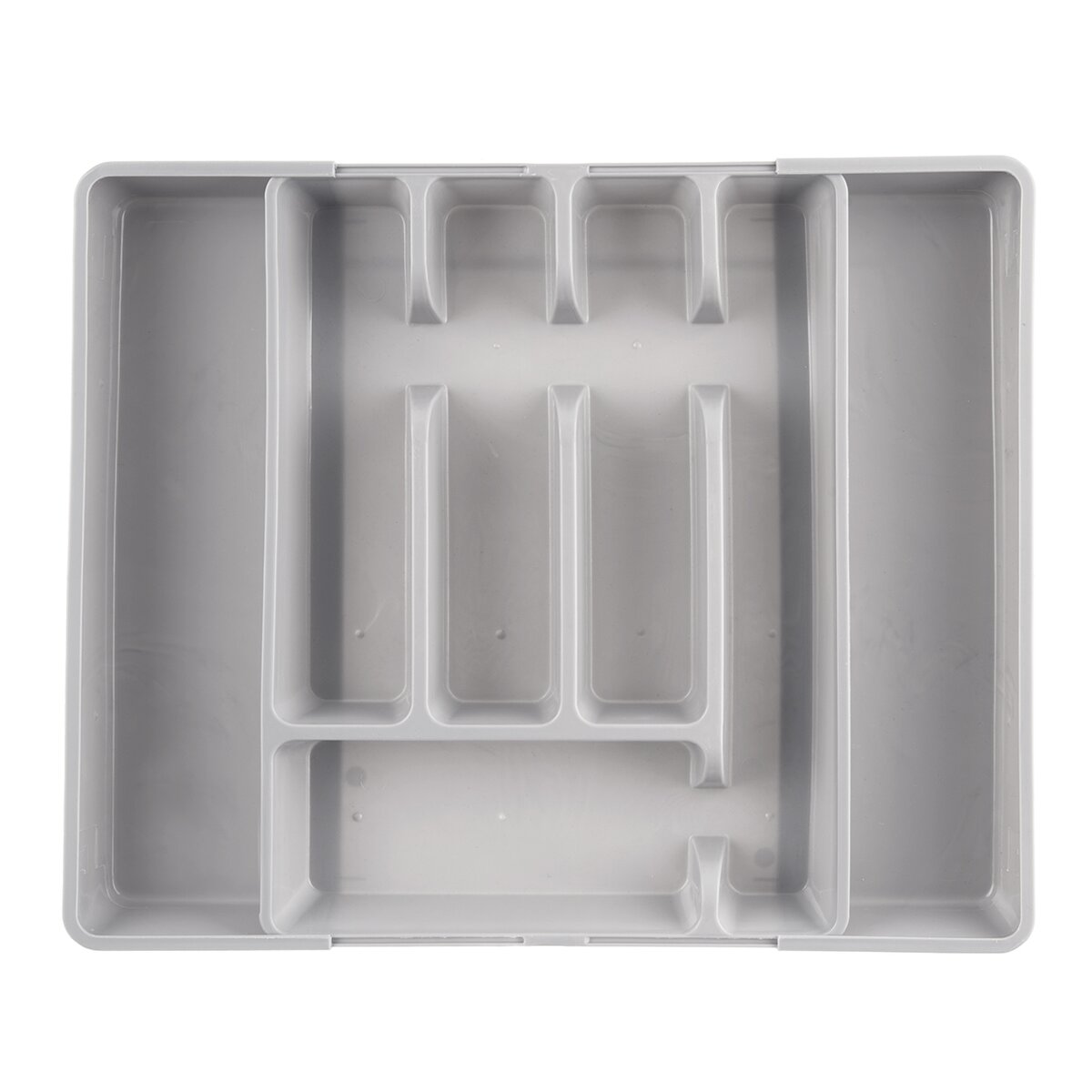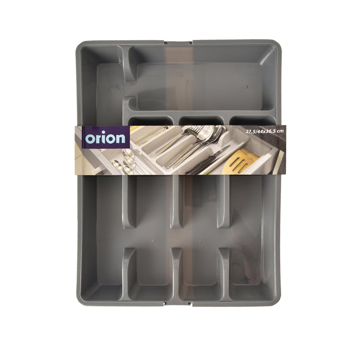 Kód produktu 150749Šedý plastový príborník má veľkosť 27,5/44x36,5x4,3 cm. Je rozdelený na 5 základných sekcií, navyše s dvoma ďalšími sekciami, ktoré je možné vysunúť do strán.