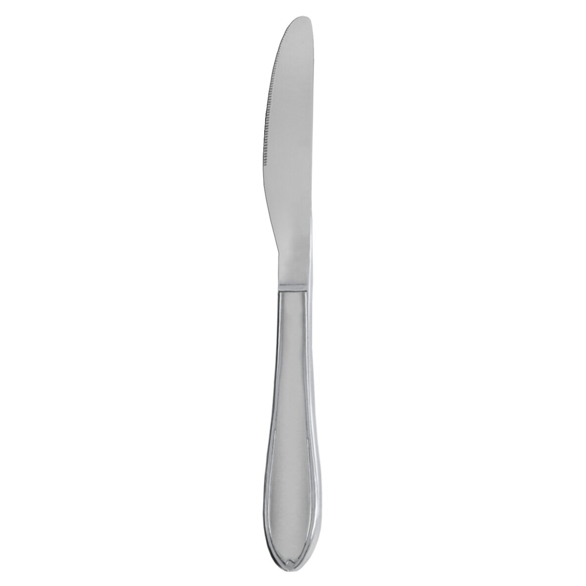Lesklé nerezové príborové nože v jednoduchom dizajne, s elegantnou pretlačovanou linkou na rukoväti. Majú klasický zaoblený tvar, navyše sa príjemne držia v ruke.