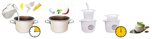 Liter čerstvého mlieka zohrejte na teplotu cca 96°C (teplota tesne pred varom). Na zohriatie môžete použiť mikrovlnnú rúru s výkonom 800 W. Do horúceho mlieka nalejte šťavu z citróna alebo ocot, alebo jogurt. Zľahka premiešajte. Mlieko sa zrazí.