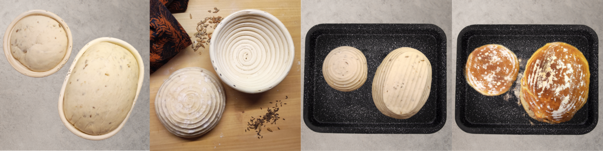 Do múkou vysypanej ošatky vložíme cesto a zapneme rúru na 200 °C. Kým sa rúra rozohreje, cesto ešte nakysne. Do rúry dole vložíme prázdny plech. Potom na druhý plech bochník vyklopíme z ošatky a hore ho narežeme nožom na chlieb. Tesne pred vložením chleba do rozpálenej rúry nalejeme na spodný plech studenú vodu, tá sa zmení na paru a chlieb potom bude krásne chrumkavý, s peknou pevnou kôrkou.
