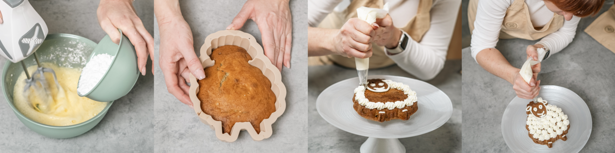 Vlejeme do olejom vystriekanej silikónovej formy, napríklad v tvare roztomilých zvieratiek, pečieme cca 45 minút pri 170–180 °C, prepečenie jednoducho otestujeme špajdľou.