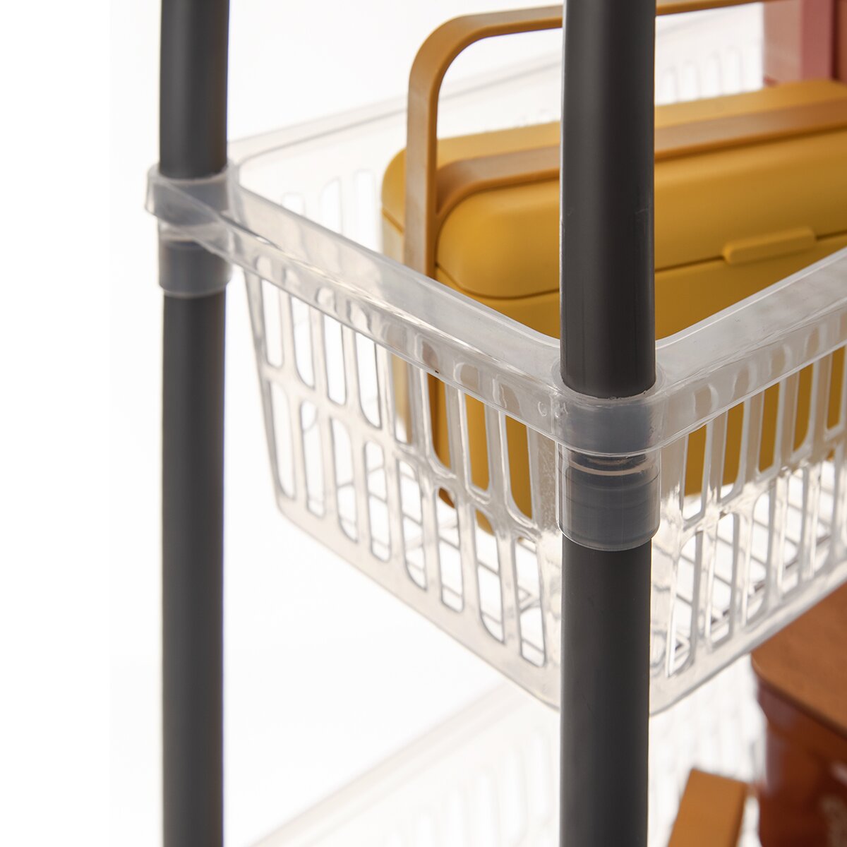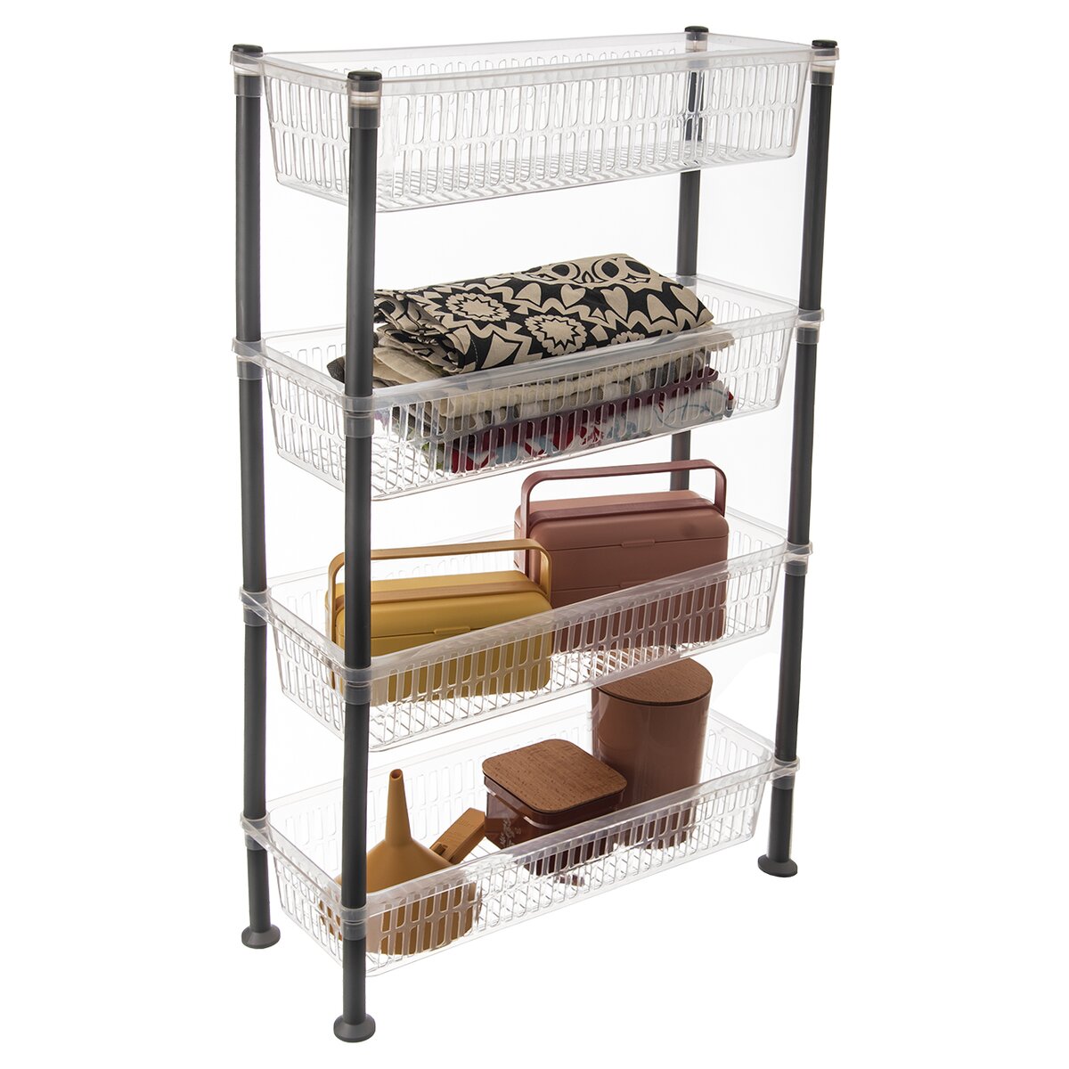 Kód produktu 812612Šedý plastový regál so 4 transparentnými alebo šedými košíkmi uloží drobnosti kdekoľvek v domácnosti. Je úzky, takže vyplní priestor medzi skrinkami alebo poskytne dostatok úložného priestoru tam, kde je málo miesta.