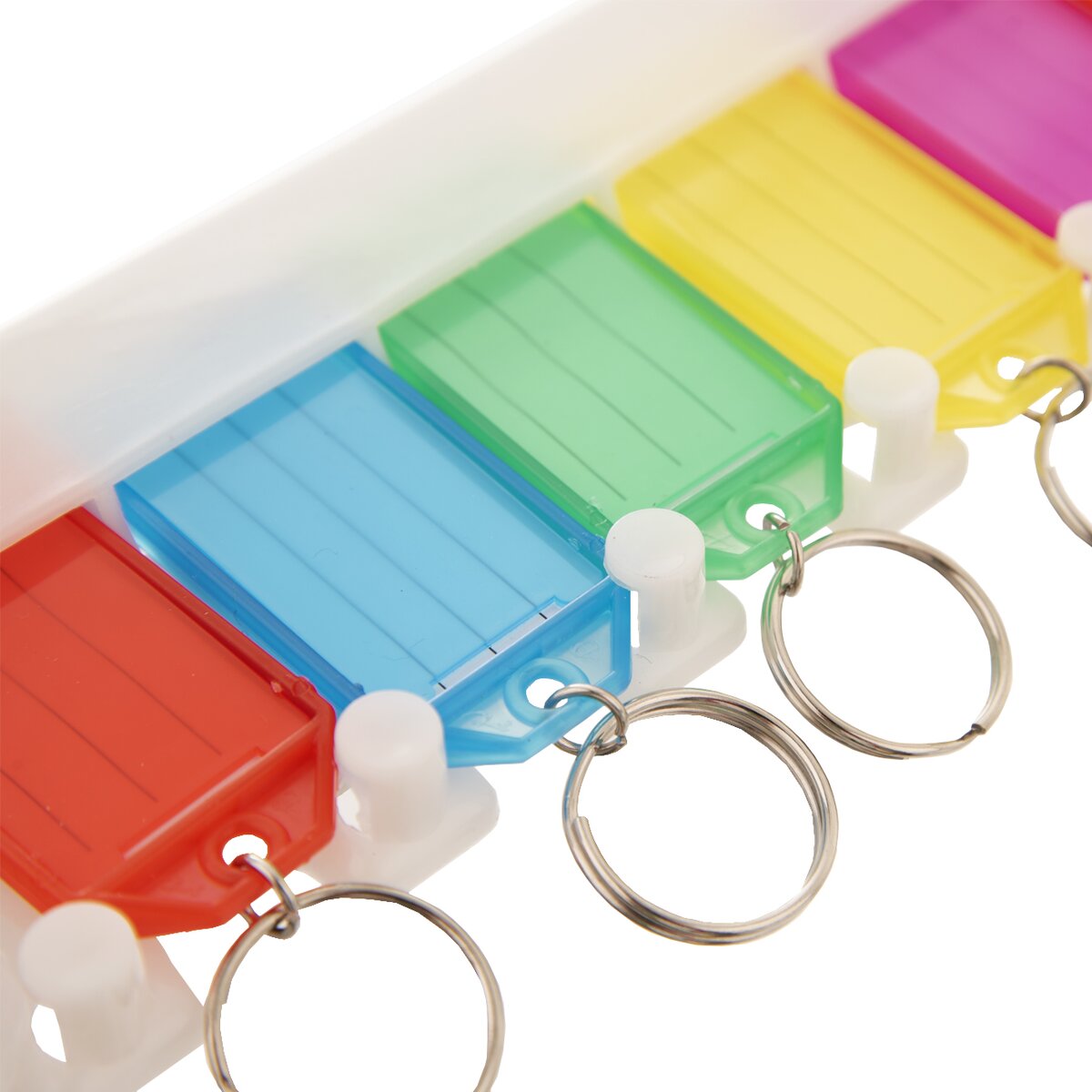 Vnútri je vložený papierový štítok, ktorý ponúka možnosť popisu. Plastovú visačku ľahko otvoríte a označíte zväzok ako potrebujete. Kľúče navlečiete na kovový krúžok a je to.