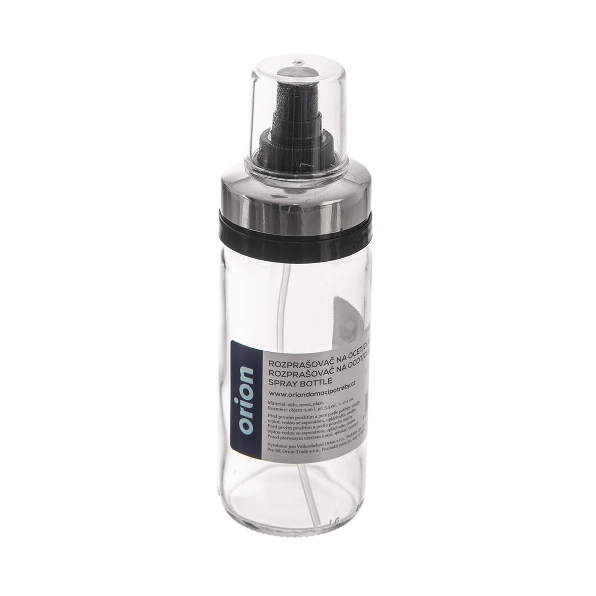 Upozorňujeme, že vzhľadom na vyššiu hustotu oleja nie je efekt rozstrekovania taký dokonalý ako v prípade octu či iných tekutín. Sklenenú nádobu je možné umývať v umývačke.