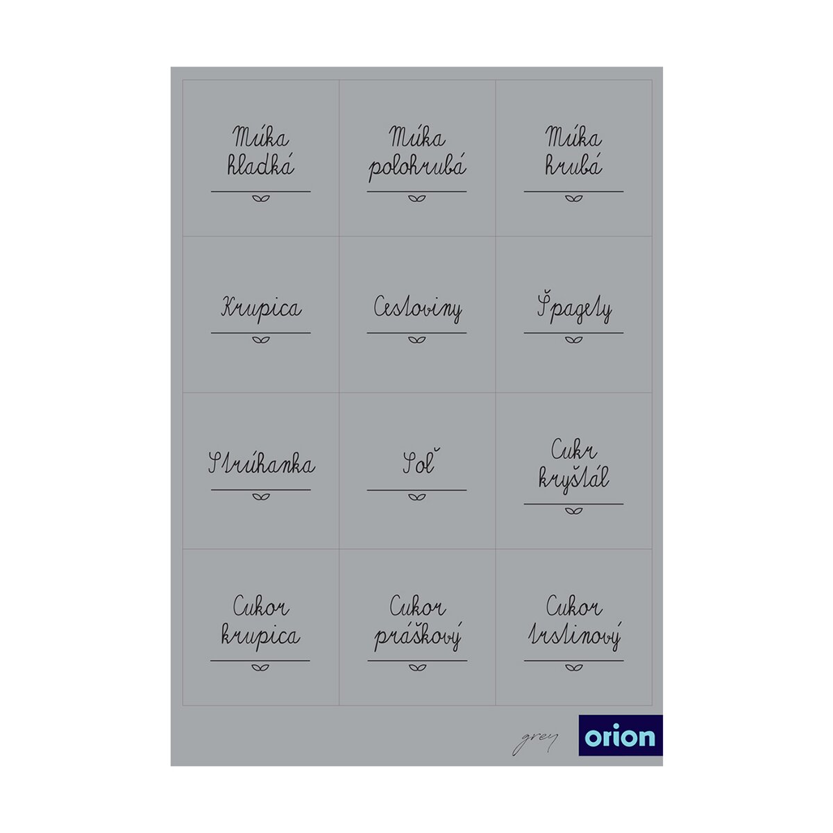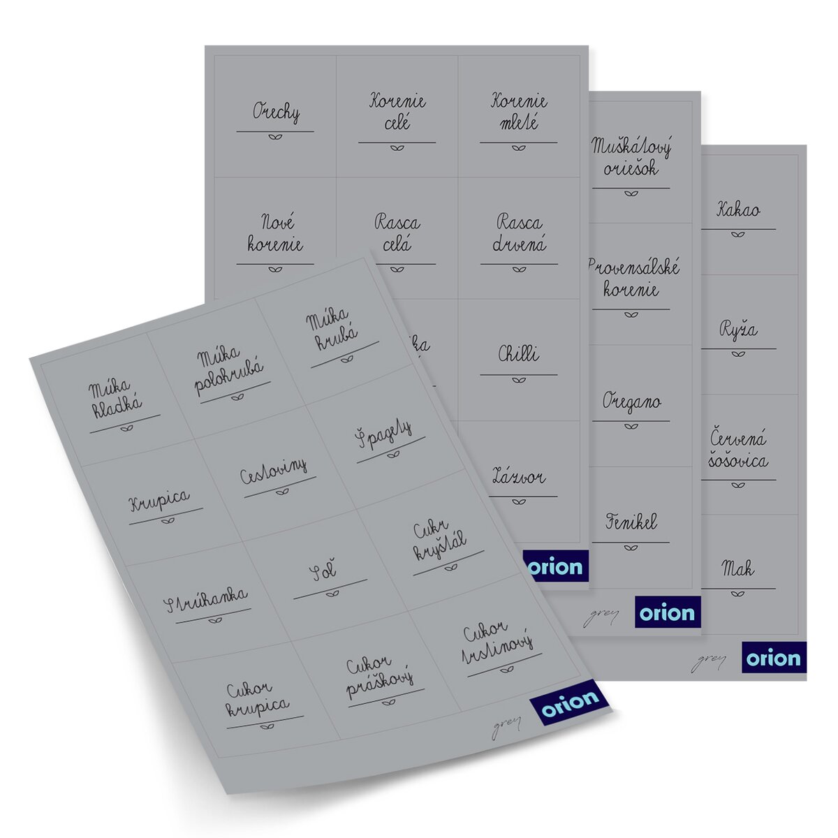 V balení sú 4 archy s predtlačenými najpoužívanejšími surovinami, nájdete tu napr. múku, cukor, strukoviny, strúhanku, orechy, ale aj rôzne druhy voňavého korenia. Hodí sa napr. na označenie plechových dóz Whiteline alebo najrôznejších uzatvárateľných pohárov a koreničiek.