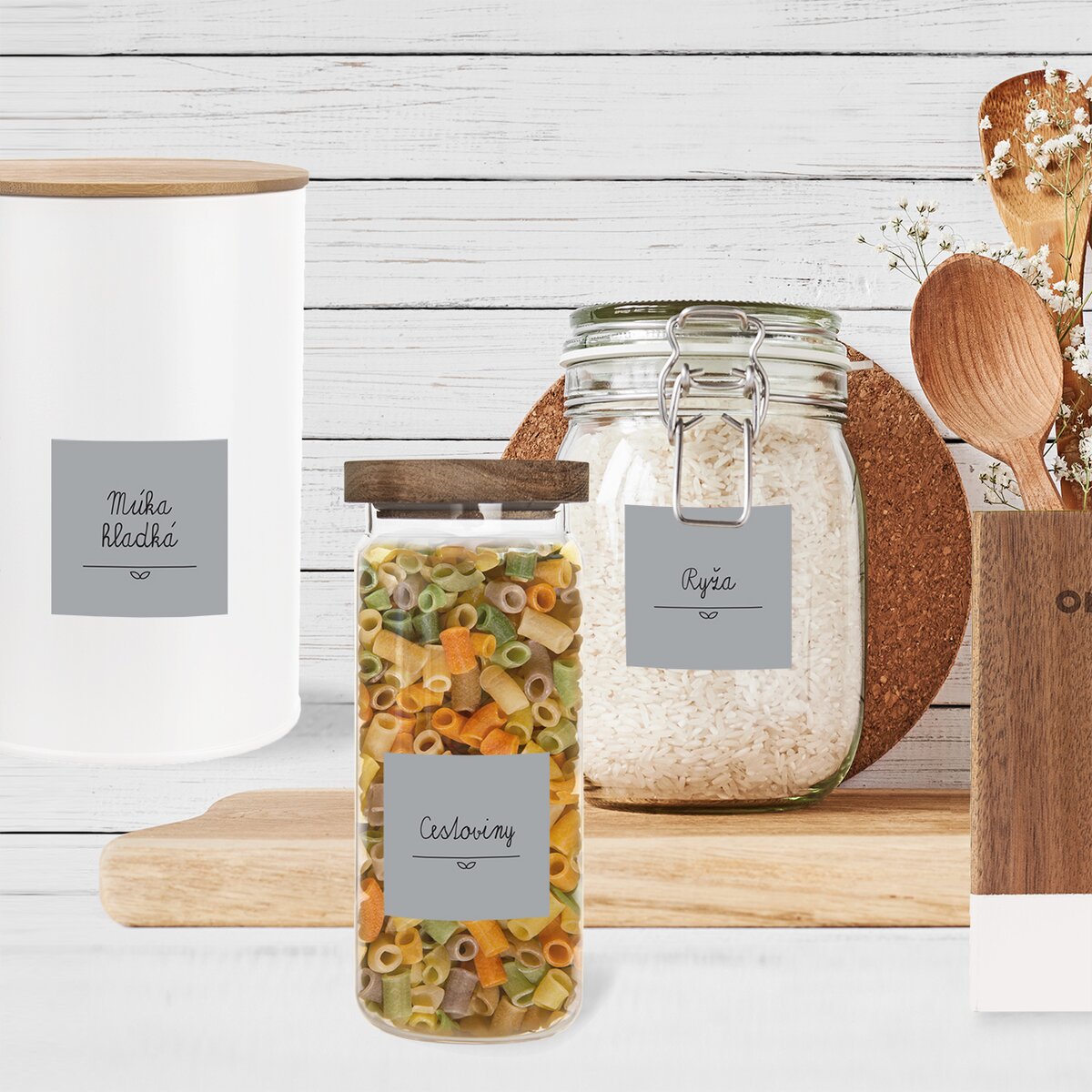 Viac informáciíŠedé samolepky s textom sú vhodné na označenie dóz, fliaš, koreničiek a potravinových boxov. Sypké aj tekuté pochutiny budú prehľadne uložené v zásuvkách a špajze, navyše budú mať šmrnc. Štvorcová papierová samolepka s lamináciou má veľkosť 4,7x4,7 cm.