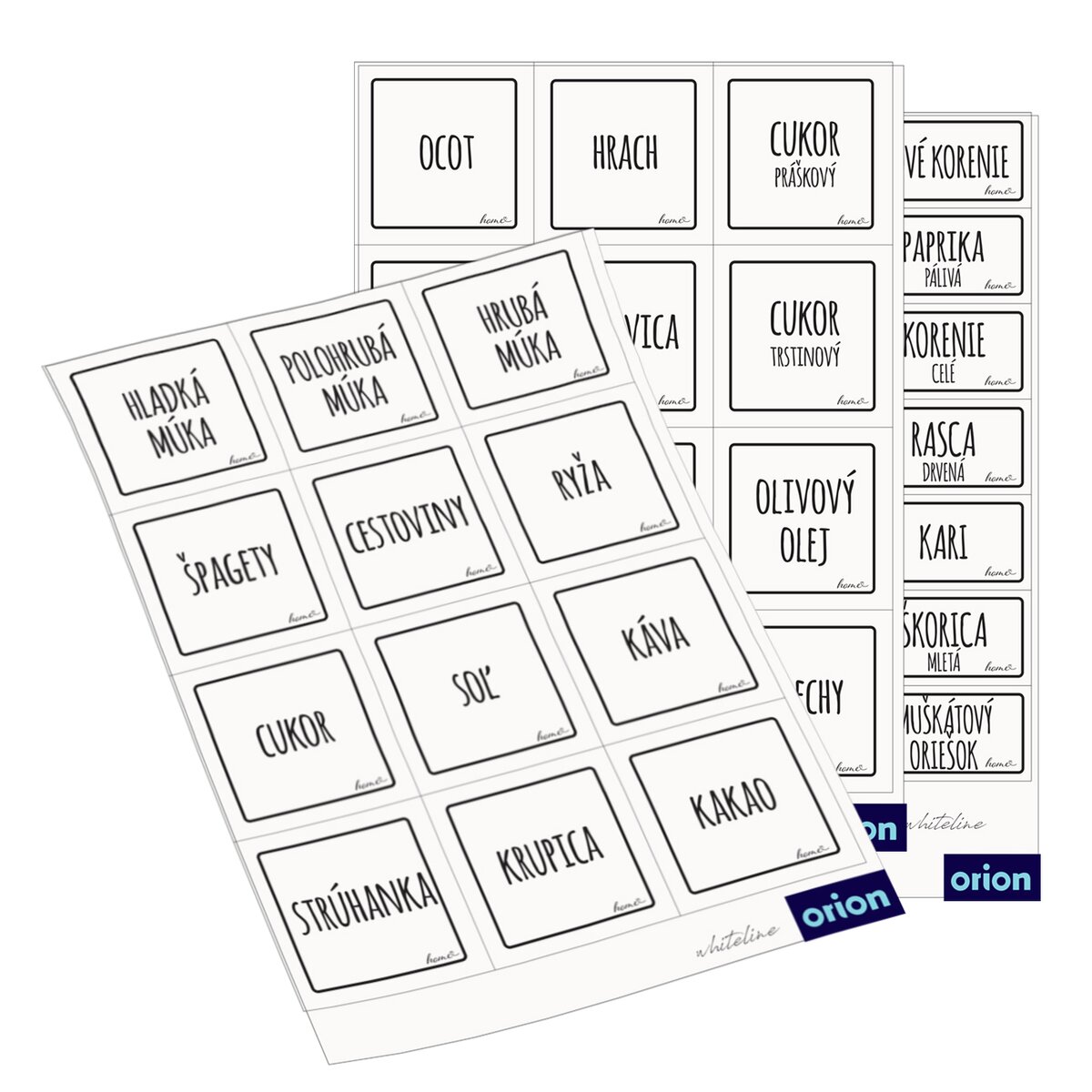 V balení sú 3 archy (celkom 47 samolepiek) s najpoužívanejšími surovinami, nájdete tu napr. múku, cukor, strukoviny, strúhanku, orechy, ale aj rôzne druhy voňavého korenia. Hodí sa napr. na označenie plechových dóz Whiteline alebo koreničiek Black.