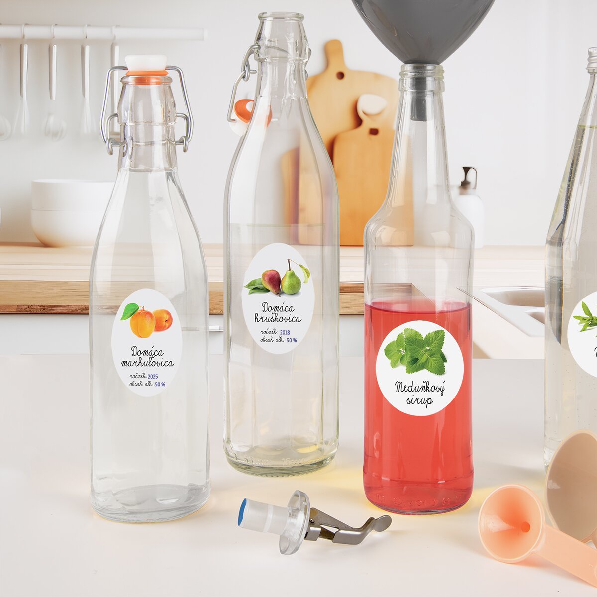 Sada papierových samolepiek sa výborne hodí na polepenie fliaš a pohárov, v ktorých chcete hruškovicu uchovať. V balení sú 3 bloky samolepiek. Na samolepku stačí dopísať rok jej výroby a obsah alkoholu a máte hotovo.