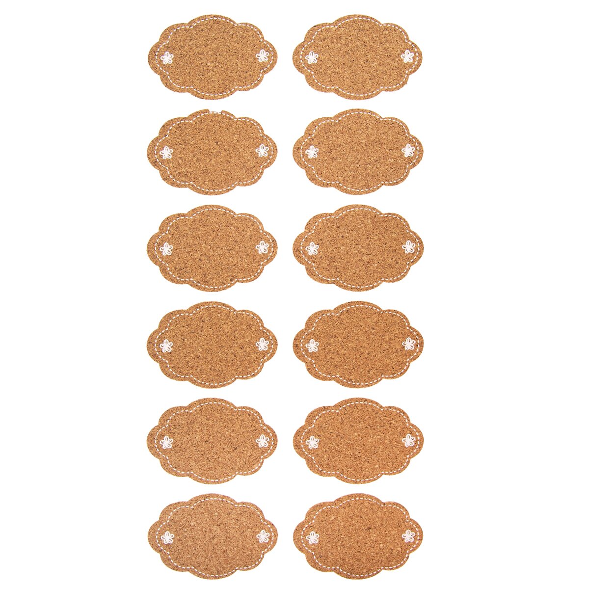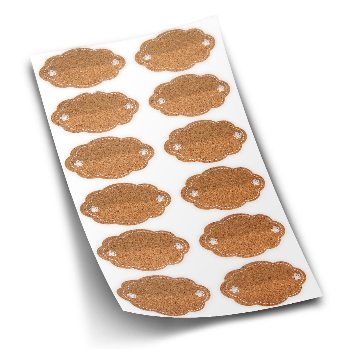 Kód produktu 842254Sada 12 korkových samolepiek na koreničky alebo potravinové dózy určených na vlastné popísanie. Každá nálepka má rozmery 5,8×4 cm.