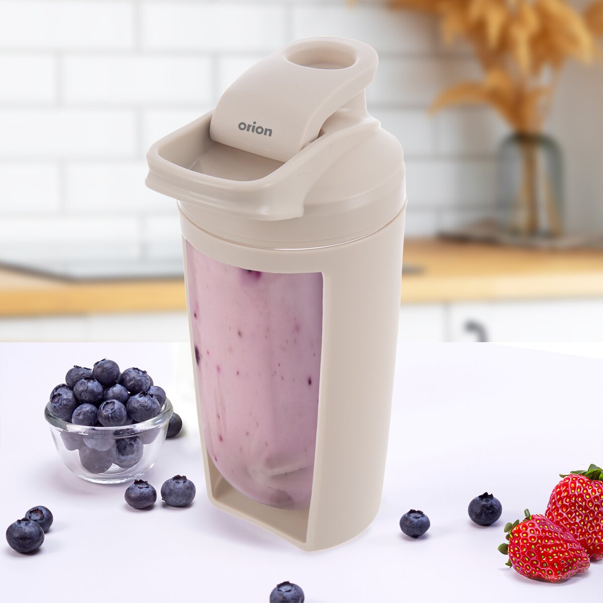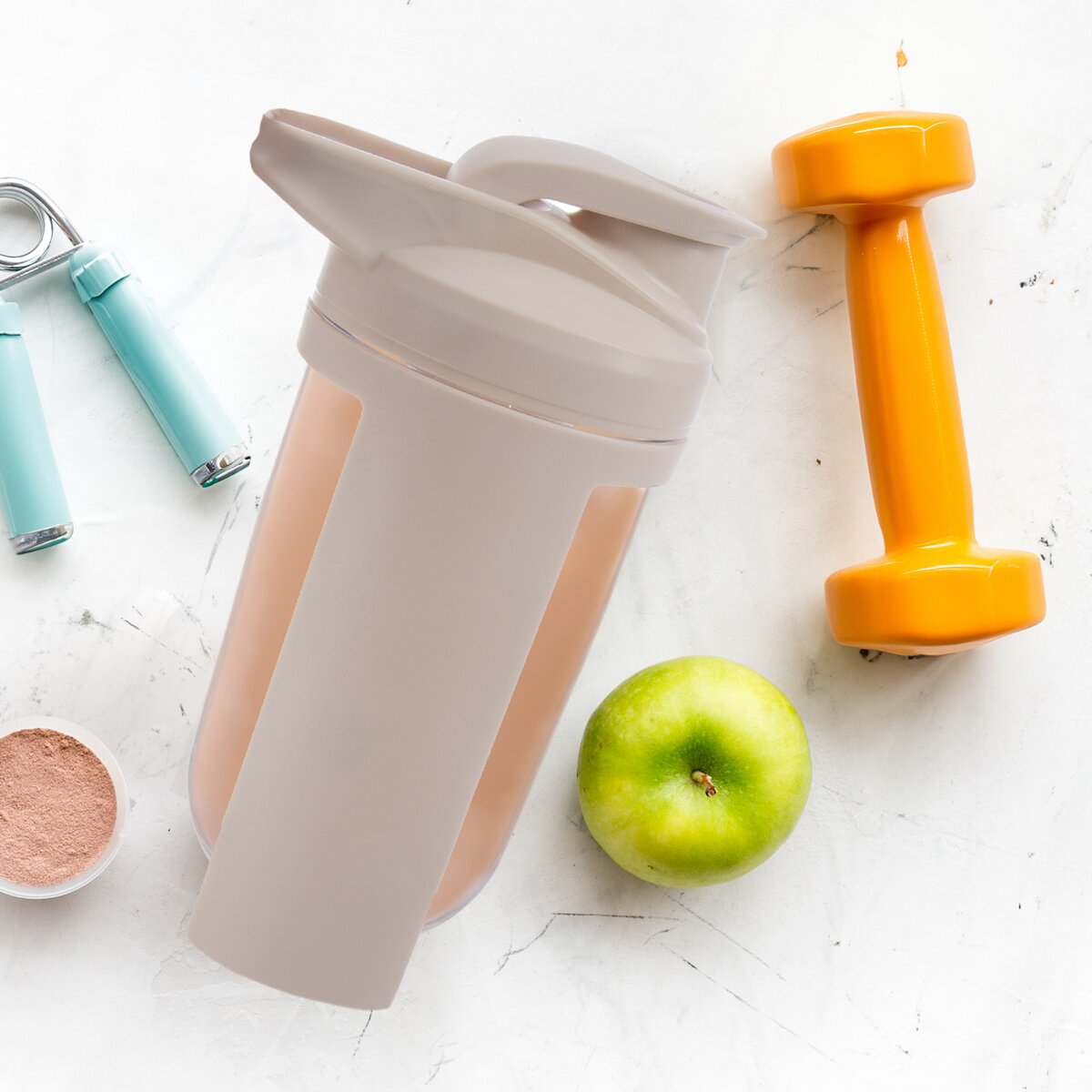 Kód produktu 128709Praktický plastový šejker s objemom 0,7 l má plastové časti, tritánovú nádobu, odklápacie viečko s tesnením a vloženú guľôčku, ktorá pomôže s rozmiešaním mliečnych aj ovocných nápojov alebo proteínových koktailov pre športovcov.