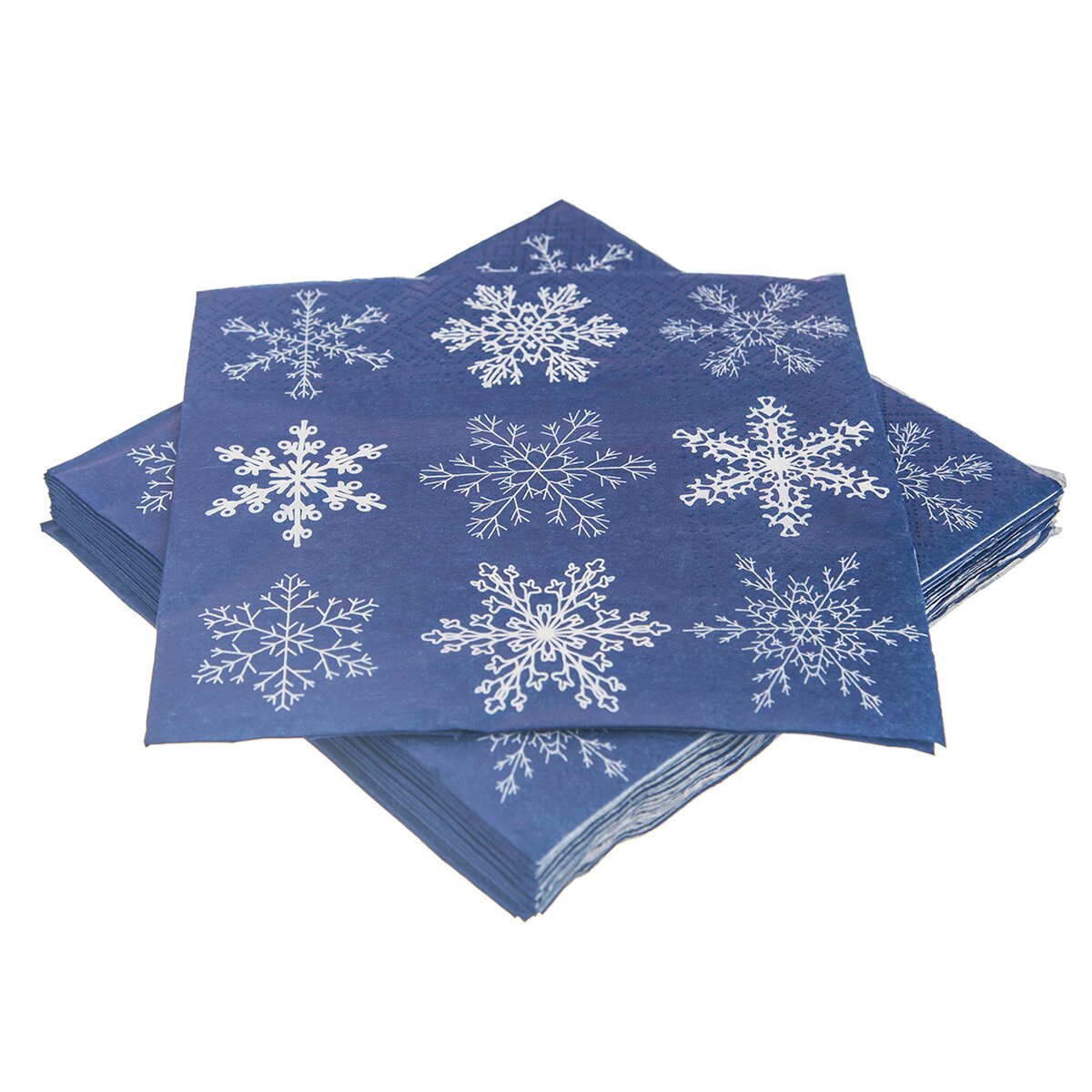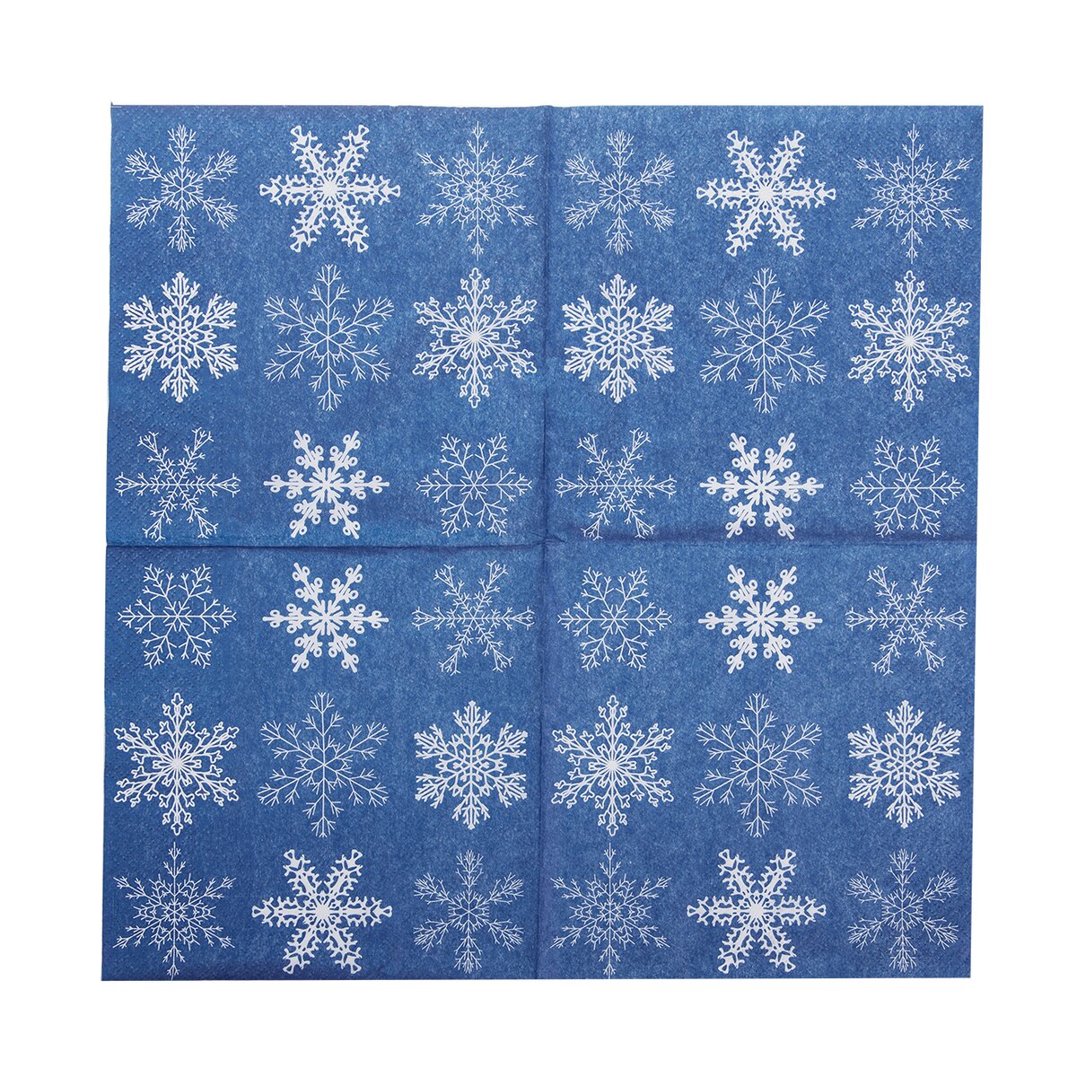Kód produktu 842303Sada 20 ks vianočne ladených papierových obrúskov zaujme motívom bielych vločiek na modrom podklade. Majú veľkosť 33x33 cm.