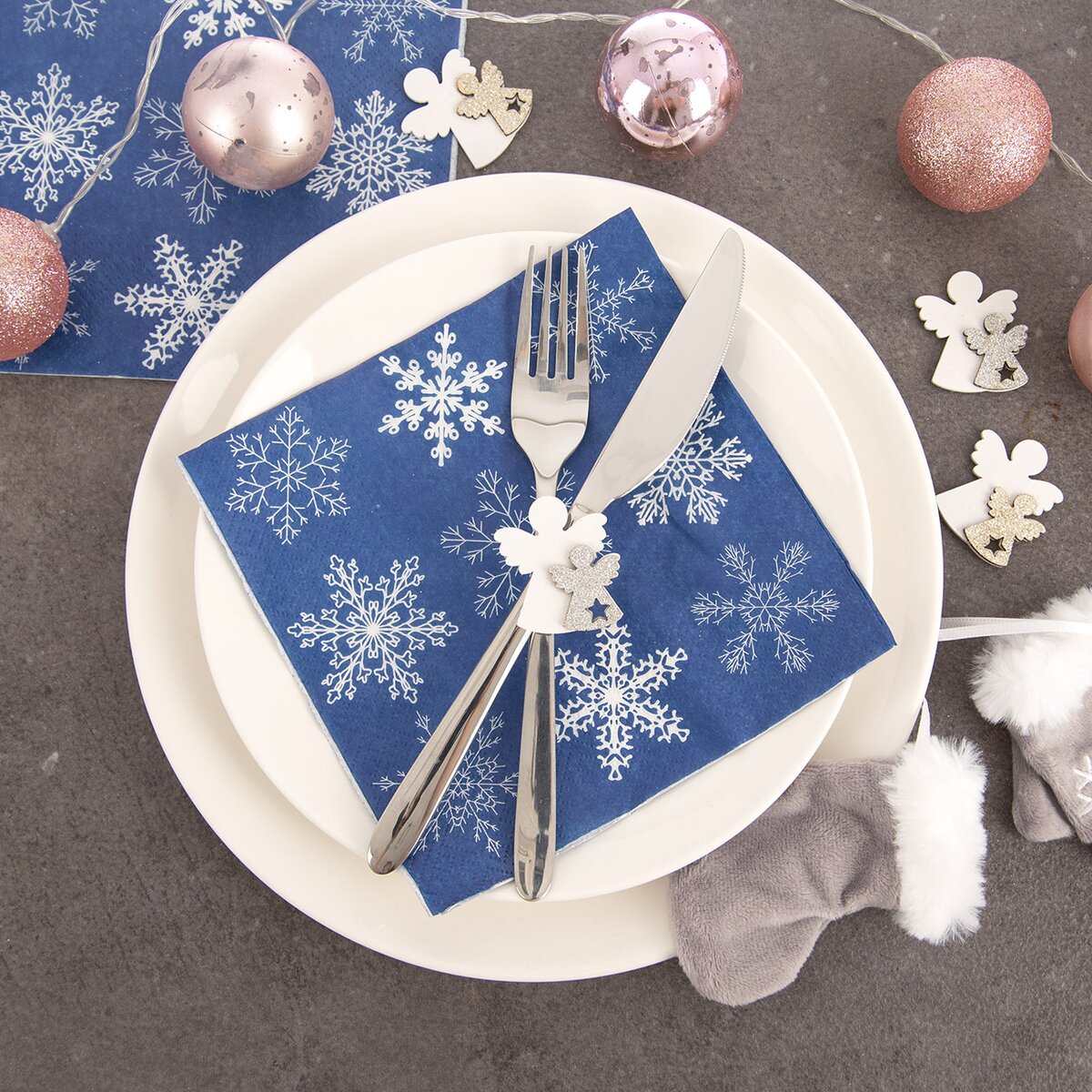 Táto sada 20 kusov trojvrstvových modrých obrúskov s decentným vianočným motívom podčiarkne slávnostné stolovanie nielen počas týchto sviatkov.