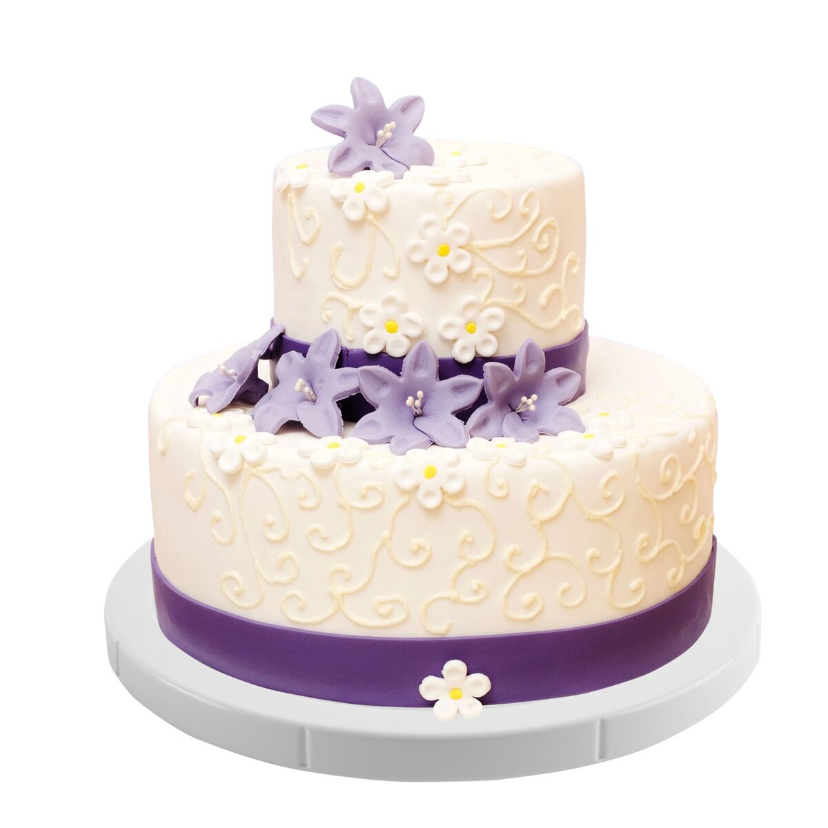 Kód produktu 540556Plastový otočný stojan s priemerom 27 cm v bielej farbe, určený na zdobenie a servírovanie tort alebo vyhladzovanie poťahovanej hmoty.