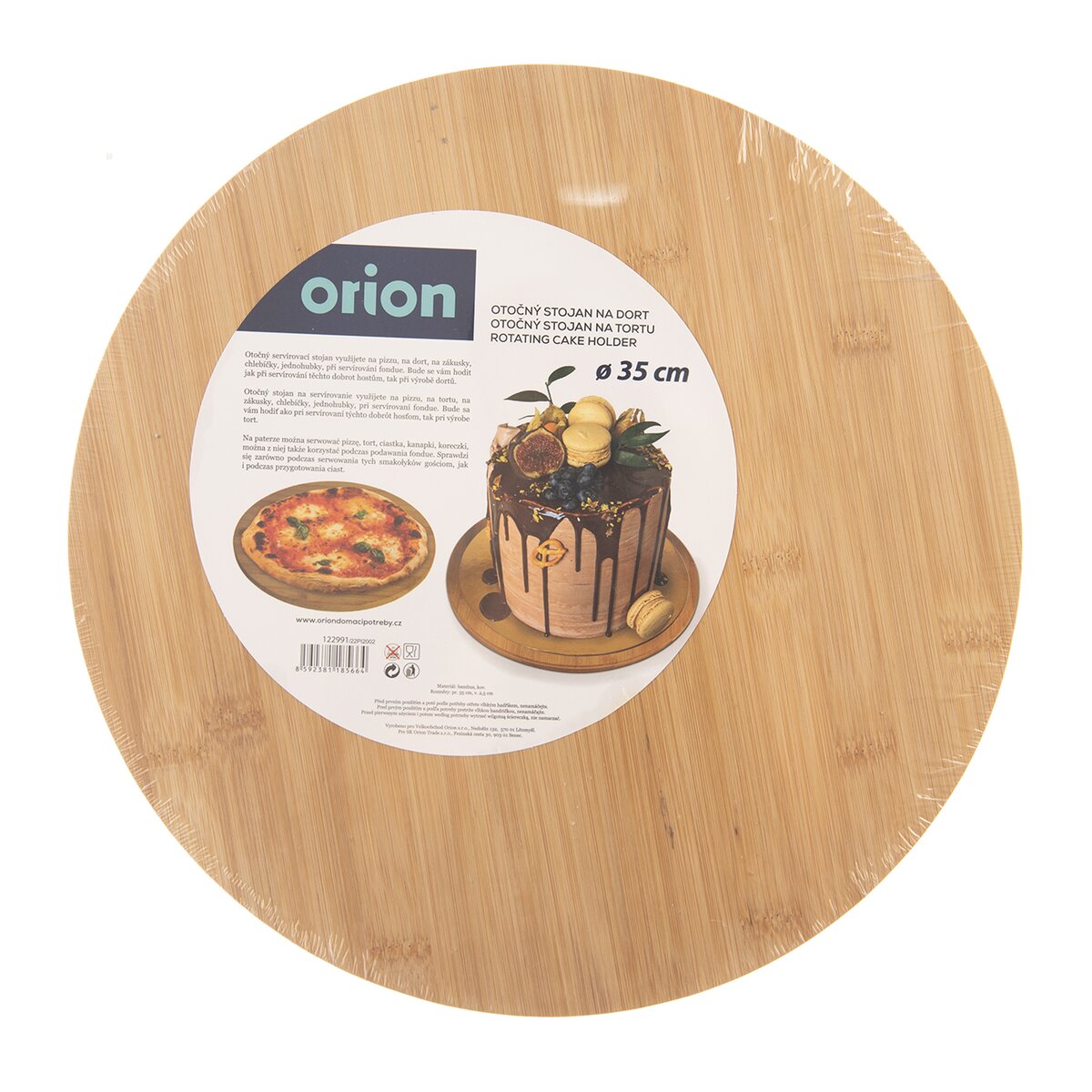 Kód produktu 122991Otočný stojan s priemerom 35 cm je vyrobený z bambusového dreva. Pomôže štýlovo servírovať pizzu, zákusky aj chlebíčky, pomôže s poťahovaním korpusov a zdobením tort.