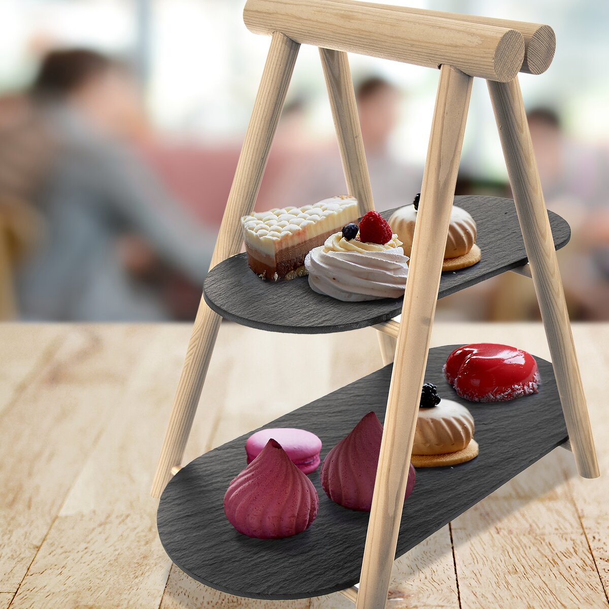 Viac informáciíAk chcete ponúknuť svojim hosťom na oslave, priateľom pri posedení na terase či záhrade štýlový servis sladkých alebo slaných dobrôt , bude 2-poschodový stojan tou správnou voľbou. Kombinácia surového borovicového dreva a dvoch odnímateľných bridlicových dosiek urobí aj z najobyčanejšieho servírovania luxusnú záležitosť.