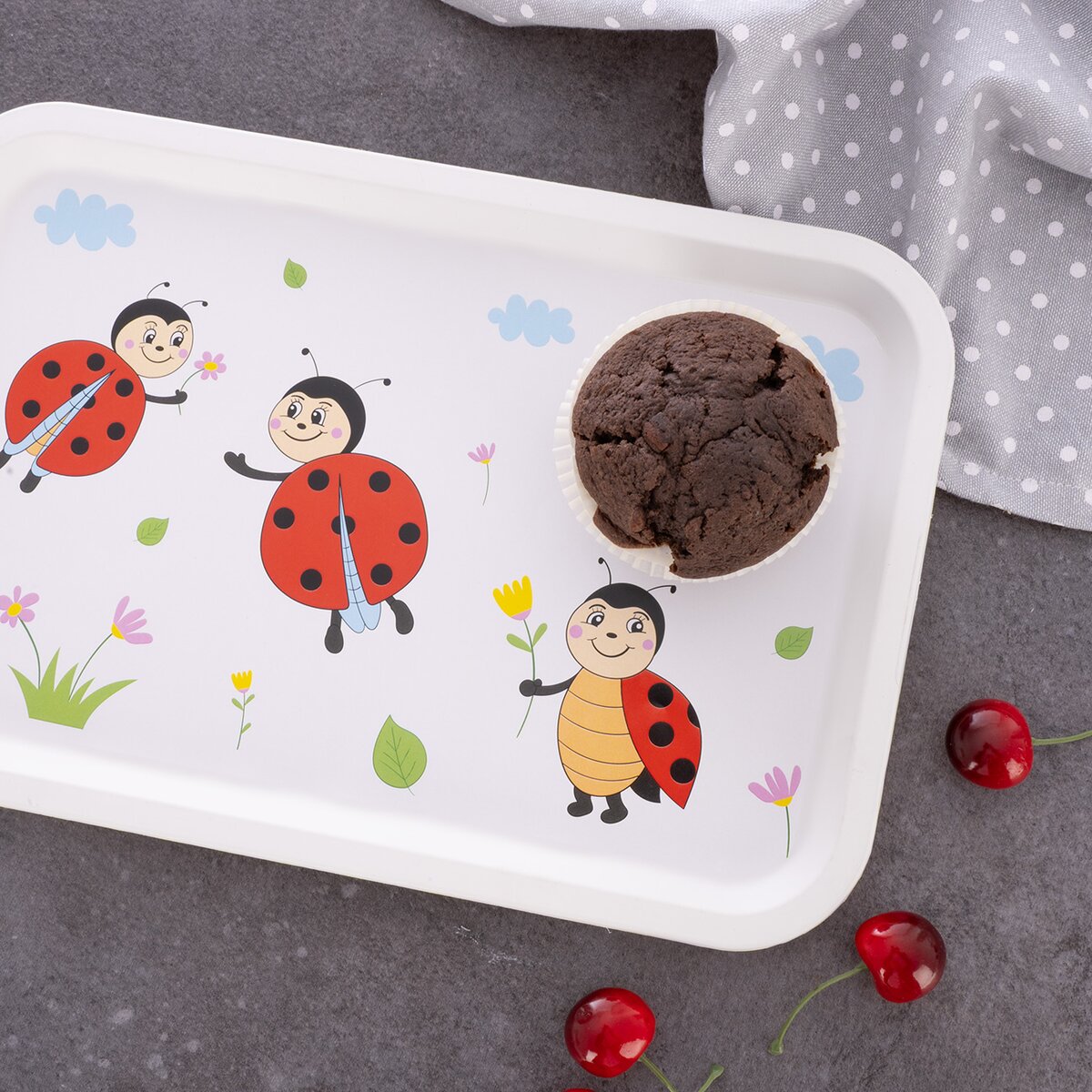 Kód produktu 155030Detská servírovacia tácka z kolekcie LIENKA s veselým dekorom je ideálna pre malých stravníkov od 3 rokov. Vďaka ľahkému a pevnému prevedeniu je vhodná na každodenné používanie a pomôže deťom s radosťou stolovať. Originálny motív zaujme svojim hravým dizajnom. Tácka nie je vhodná do umývačky riadu. Materiál: plast PP. Rozmery: 30,5x21x1,5 cm. Designed by Orion.