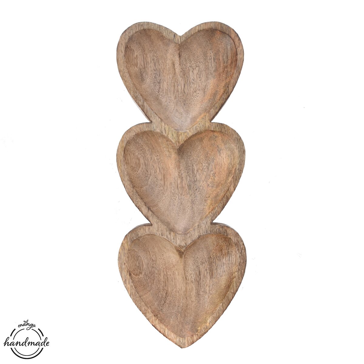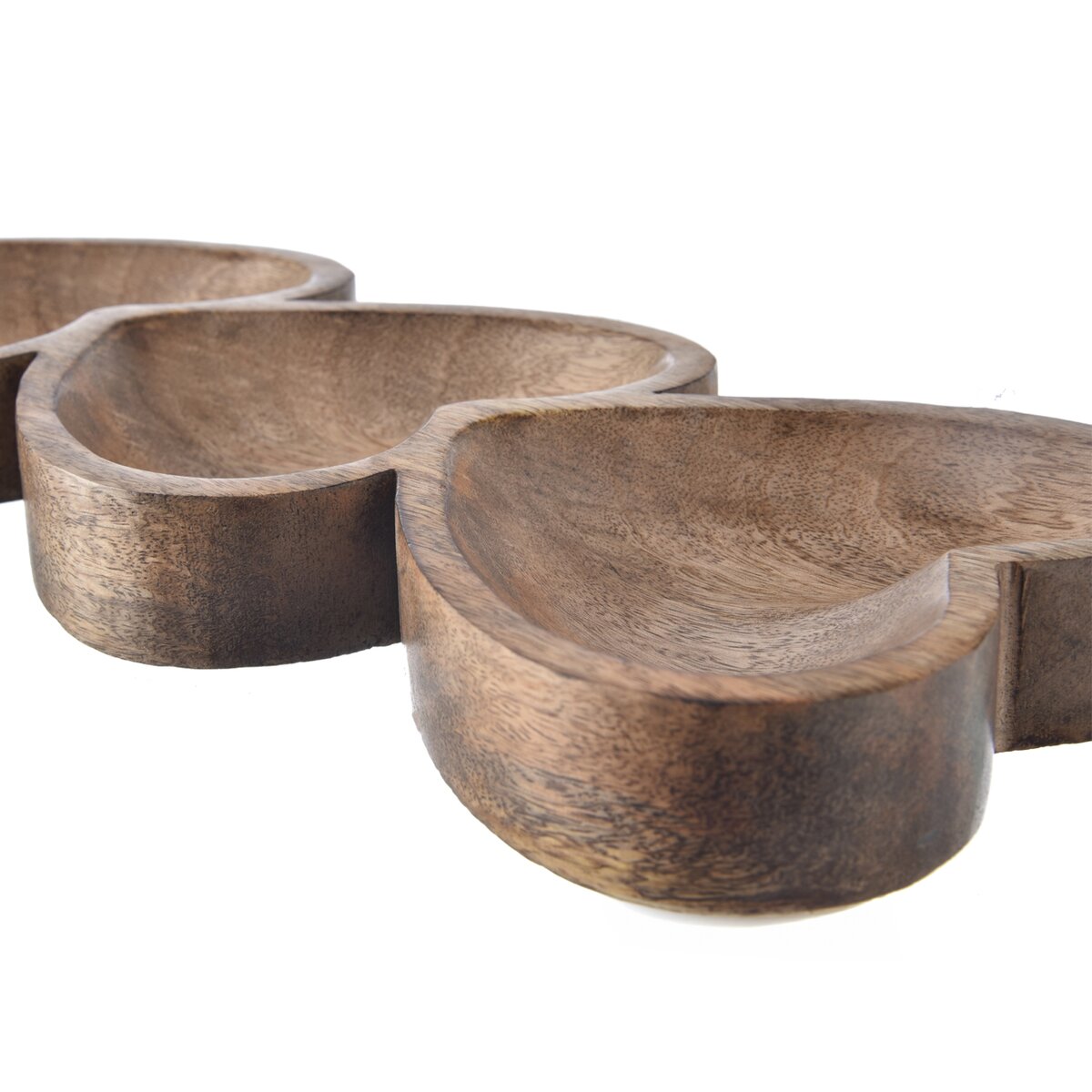 Kód produktu 129223Servírovacia miska z prírodného materiálu je rozdelená do 3 sekcií v tvare srdca. Skvele sa hodí na servírovanie suchých plodov, sušeného ovocia, orechov, cukríkov... Samotná je peknou dekoráciou, možno ju doplniť prírodninami. Materiál: mangové drevo. Rozmery: 40,5x16x3,5 cm. Nemožno umývať v umývačke riadu, nemáčajte, iba utierajte vlhkou handričkou.