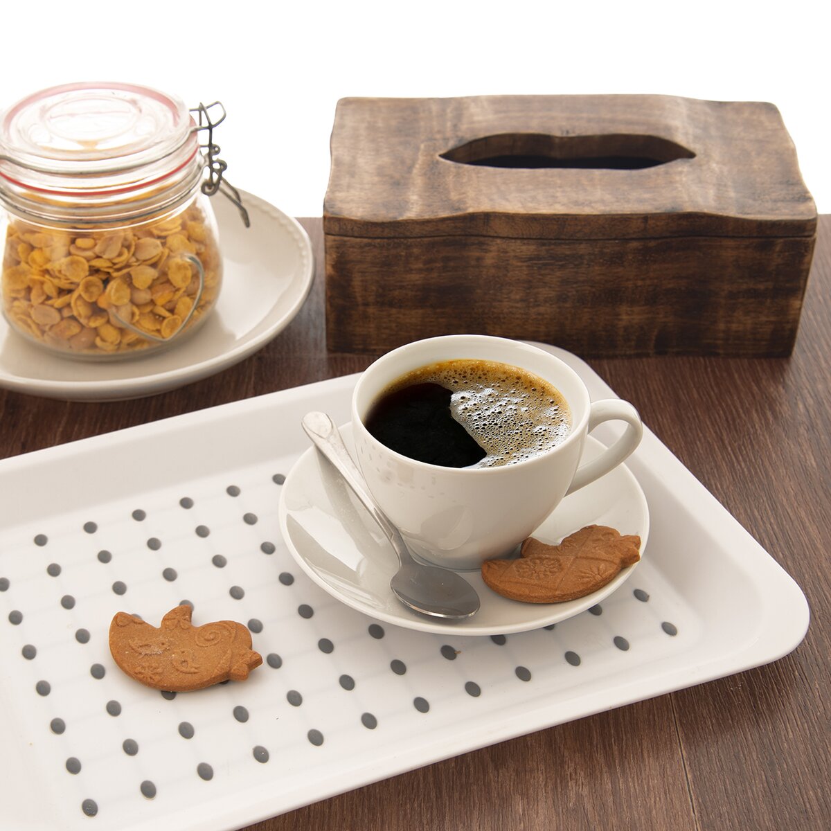 Plastová tácka v bielej farbe sa stane neoceniteľným pomocníkom pri servírovaní občerstvenia. V spodnej časti sa nachádza gumová podložka, vďaka ktorej sa tácka nekĺže. Výborne sa hodí na podávanie raňajok, desiaty alebo kávy s dezertom.