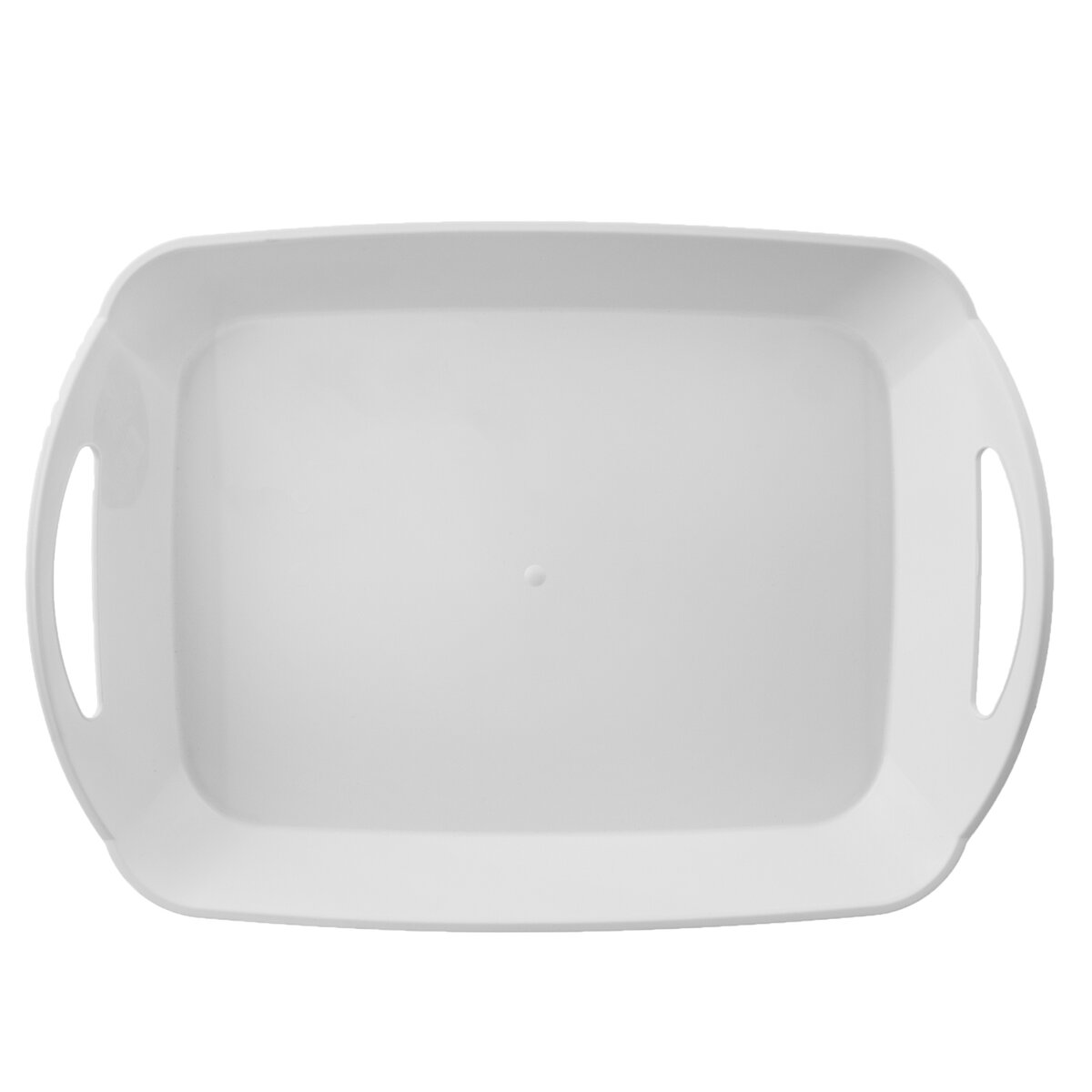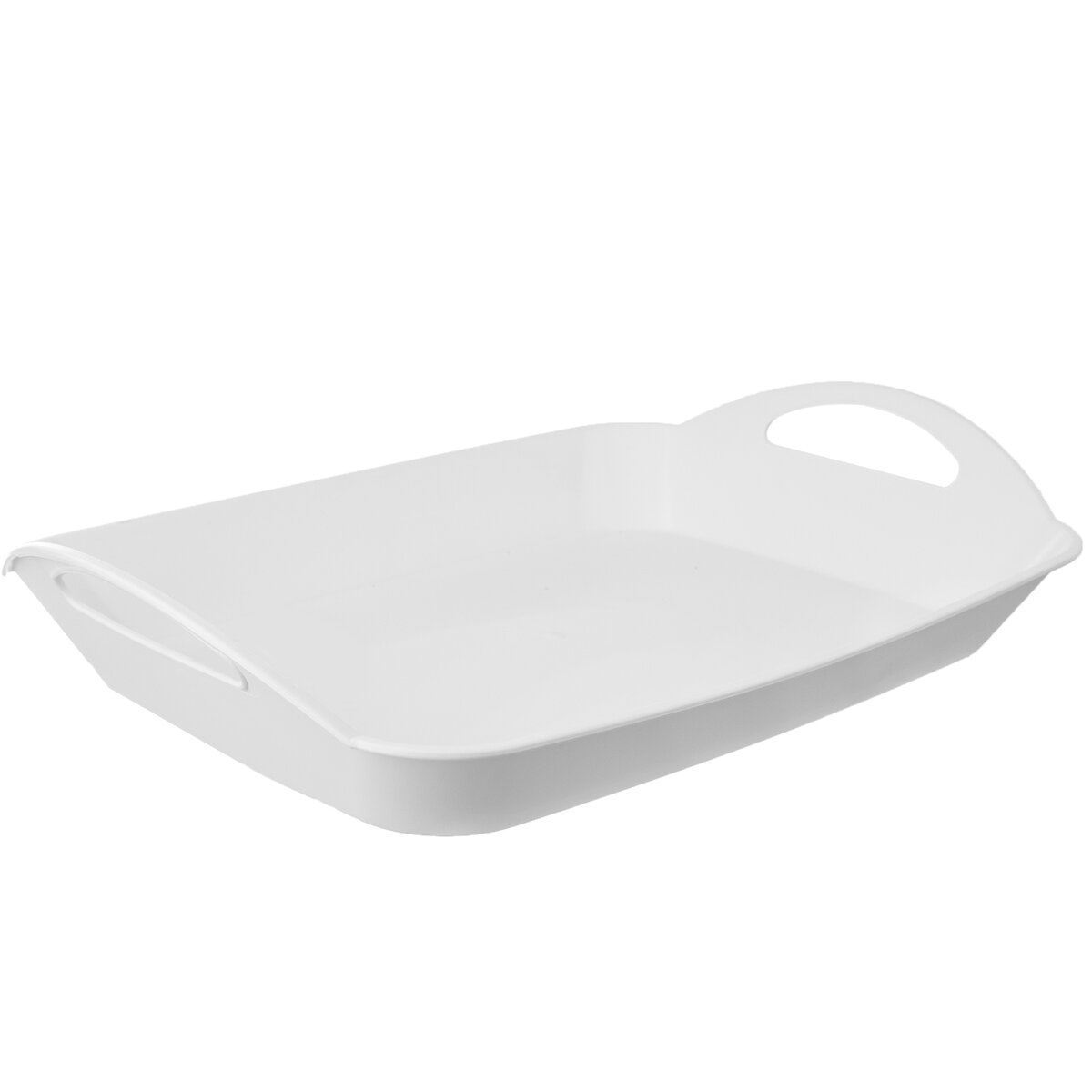 Kód produktu 153833Hlboká biela plastová tácka s ušami o rozmere 43,5x31,5x5 cm slúži na prenášanie nápojov a pokrmov.