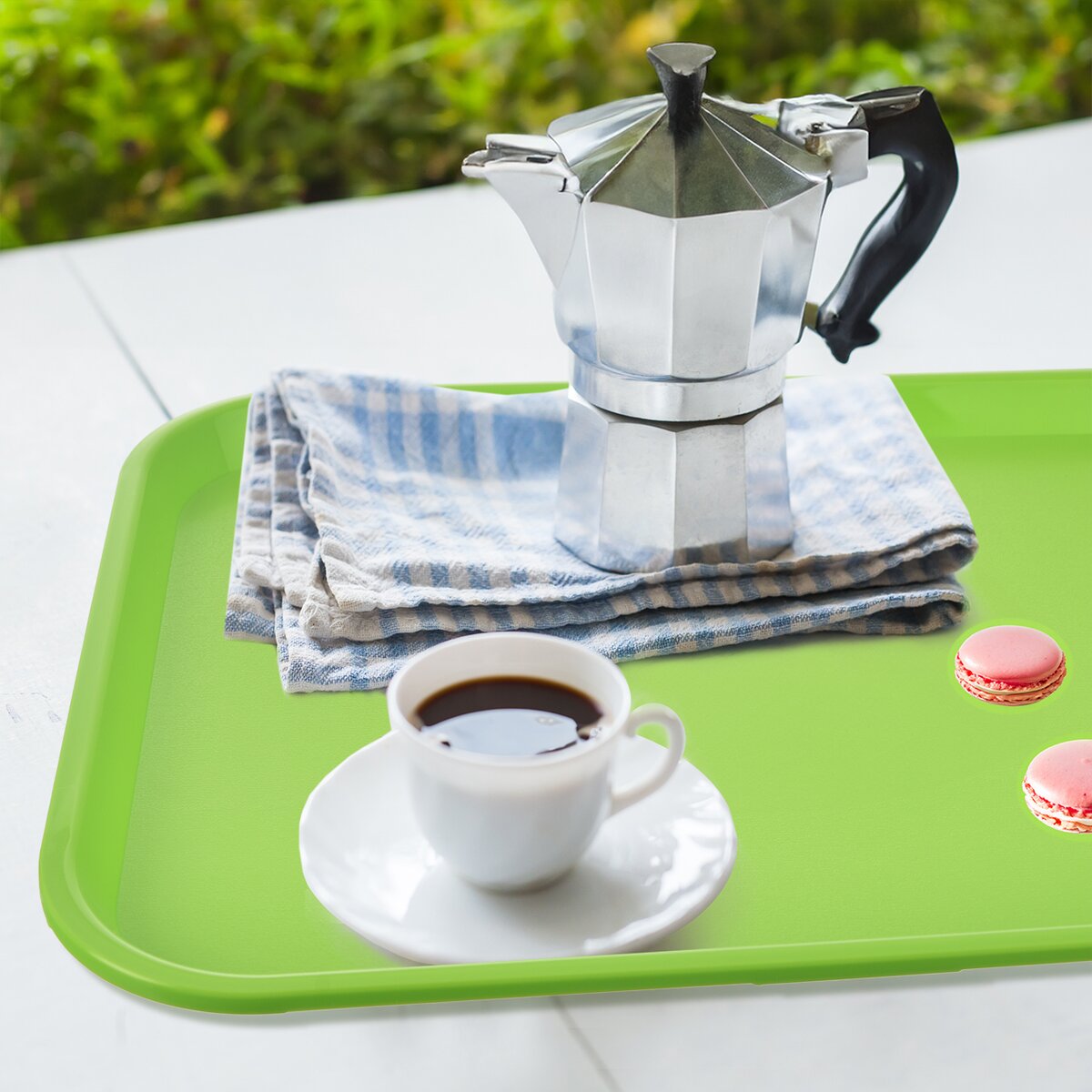 Obdĺžnikovú tácku z PP plastu využijete na servírovanie nápojov, prenášanie čajovej súpravy, tanierov na terasu, chlebíčkov alebo dezertov počas narodeninovej oslavy, ale aj zeleninovej oblohy alebo grilovaných pochutín na záhradnej párty.