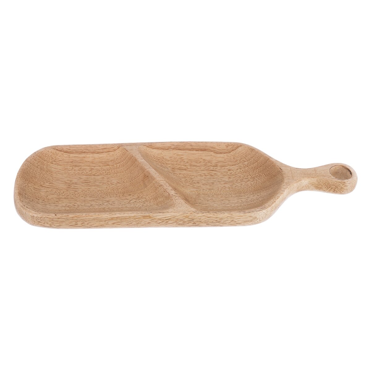 Kód produktu 155028Originálna tácka oživí prestretý stôl a zároveň poslúži ako štýlový aj praktický doplnok domácnosti. Vyrobený z mangového dreva, je možné na ňu servírovať rôzne dobroty, ako sú oriešky alebo iné suché plody, jednohubky a vďaka prehradeniu budete mať servírované dobroty od seba oddelené. Tácka má navyše otvor na zavesenie, takže ju môžete mať vždy po ruke. Nie je vhodná do umývačky riadu. Materiál: mangové drevo. Rozmery: 40,5x14x2,8 cm.