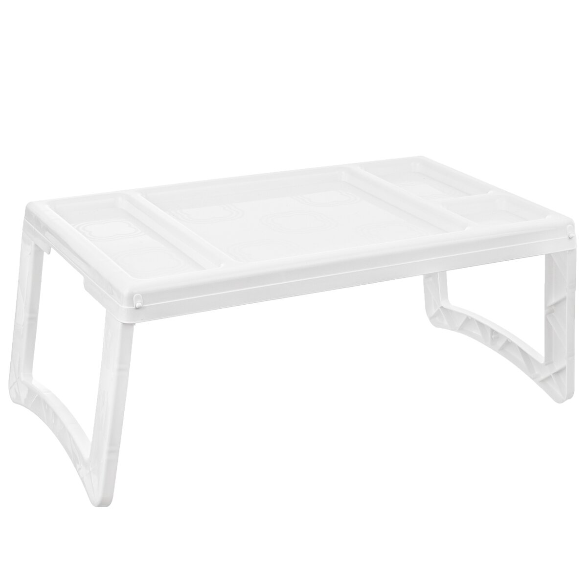 Kód produktu 153832Biely plastový podnos do postele v rozmere 50x30 cm so sklopnými nožičkami a niekoľkými sektormi, kam je možné uložiť oddelene pokrm, nápoje a iné drobnosti.