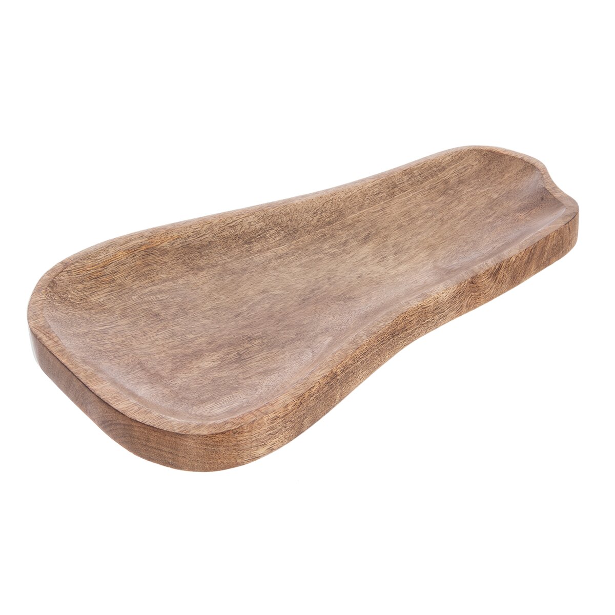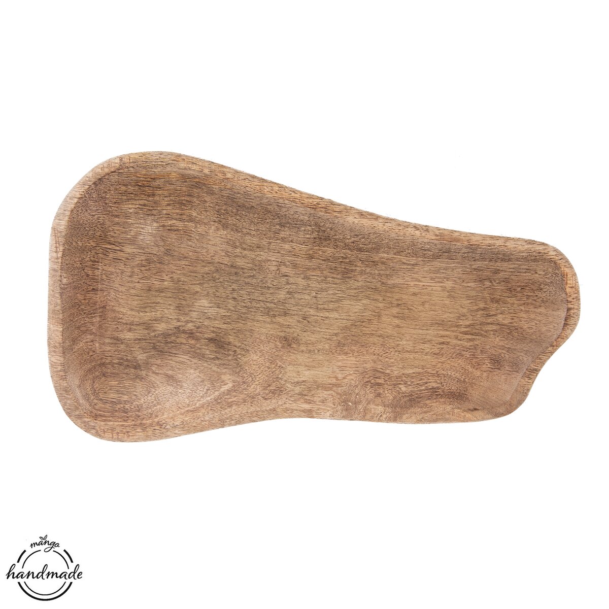Kód produktu 153898Servírovacia tácka z prírodného materiálu v tvare oválu sa skvele hodí na servírovanie suchých plodov, sušeného ovocia, orechov, cukríkov, tort, cukroviniek, slaného drobného pečiva, chlebíčkov, jednohubiek... Samotná je peknou dekoráciou, možno ju doplniť prírodninami, kamienkami, sviečkou. Materiál: mangové drevo. Rozmery: 41x23x3 cm. Nedá sa umývať v umývačke.